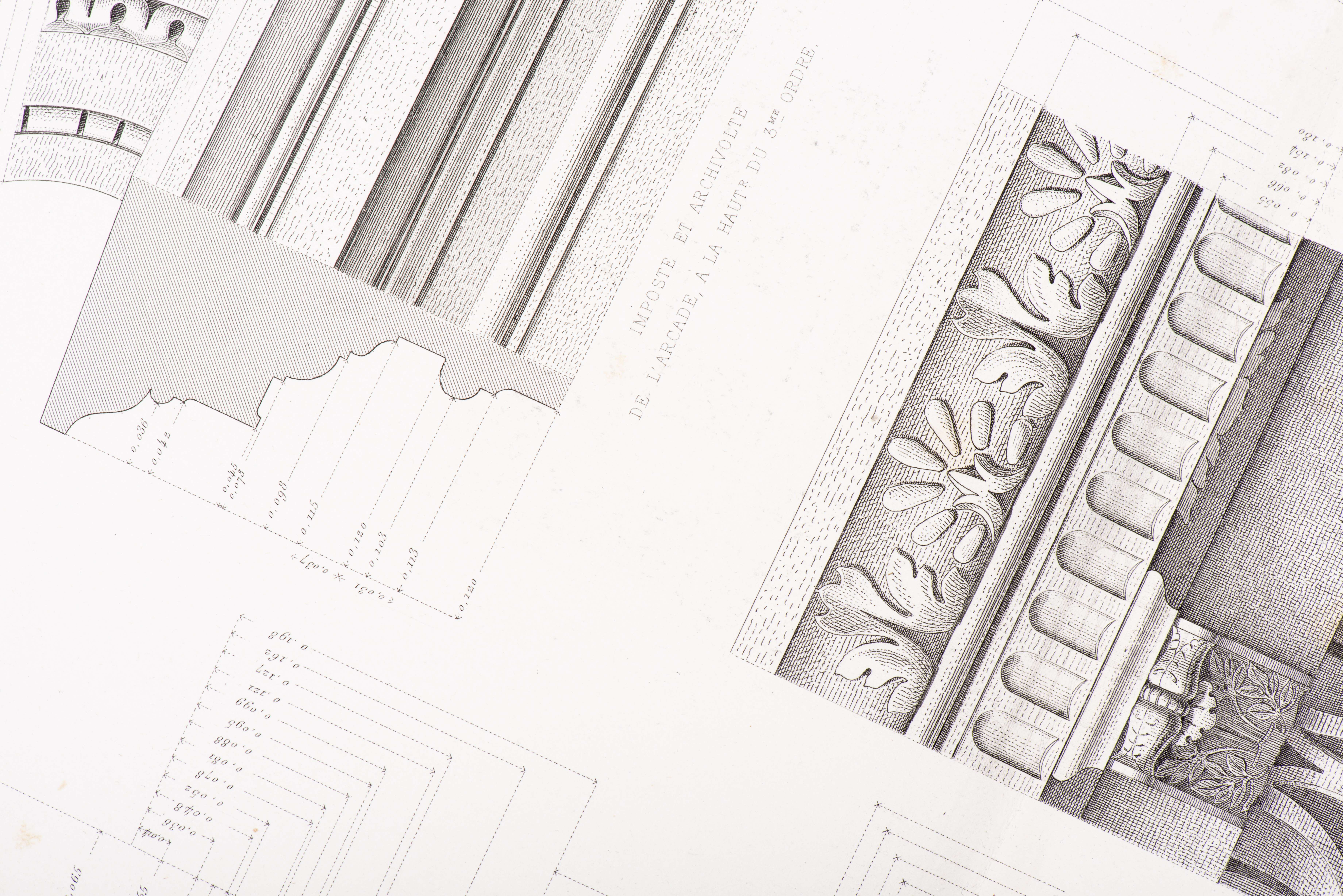 M. César Daly "Motifs Historiques d'architecture et de sculpture d'ornement pour la composition et la décoration extérieure des édifices publics et privés - Choix de fragments empruntés à des monuments français du commencement de la renaissance à la fin de Louis XVI" 1869 à Paris A. Morel libr.-éditeur 13 rue Bonaparte 2 vol. 197 pl.