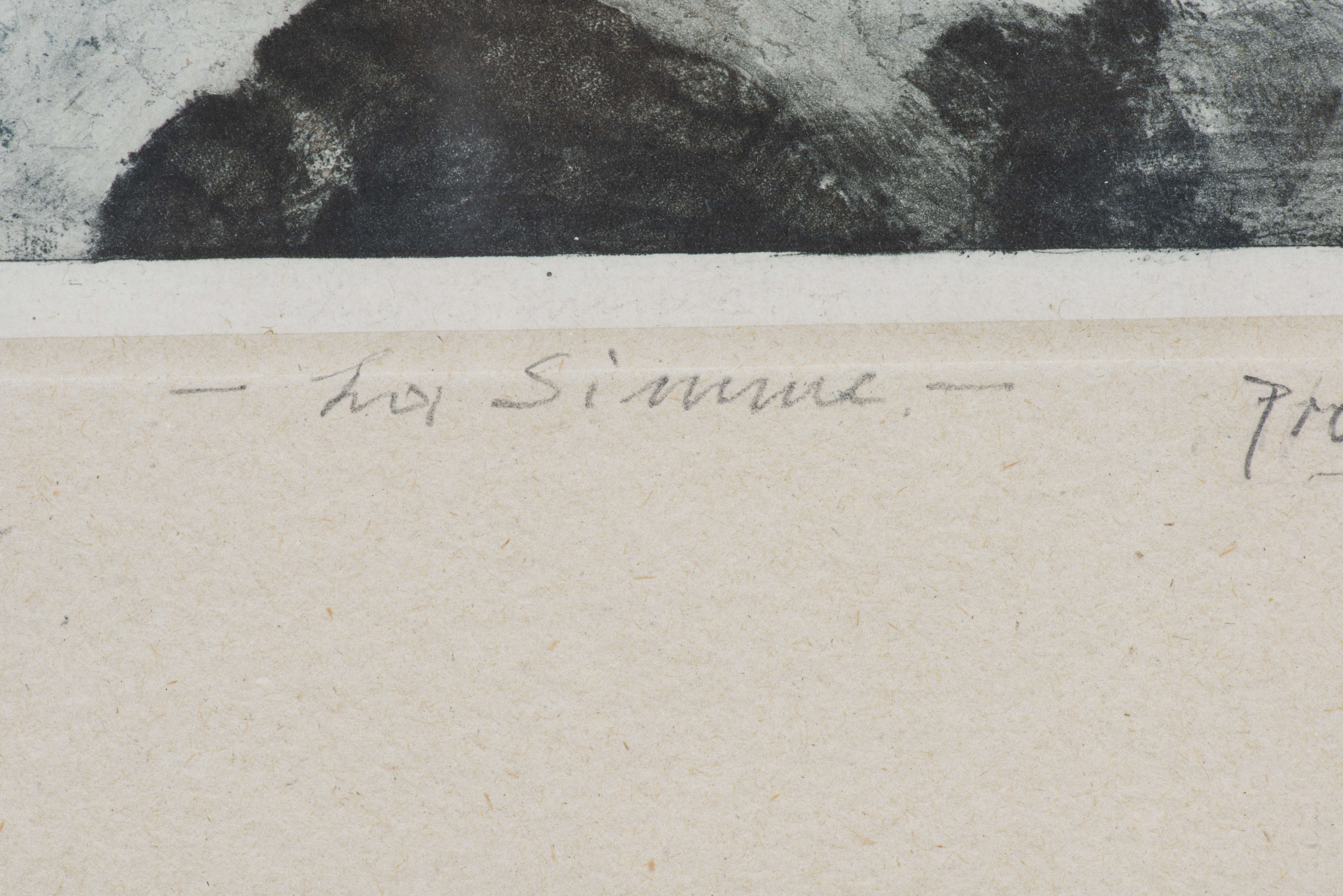 Pietro SARTO (1930), "La Simme", 1987, Héliogravure et aquatinte, titré, signé en bas à droite et annoté Epreuve d'artiste en bas à gauche. Simecek 149 .