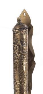 Boîtier de Mezuzah en cuivre. Maroc, circa 1960.