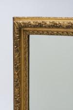 Cadre en bois sculpté doré ancien monté en miroir avec glace moderne.