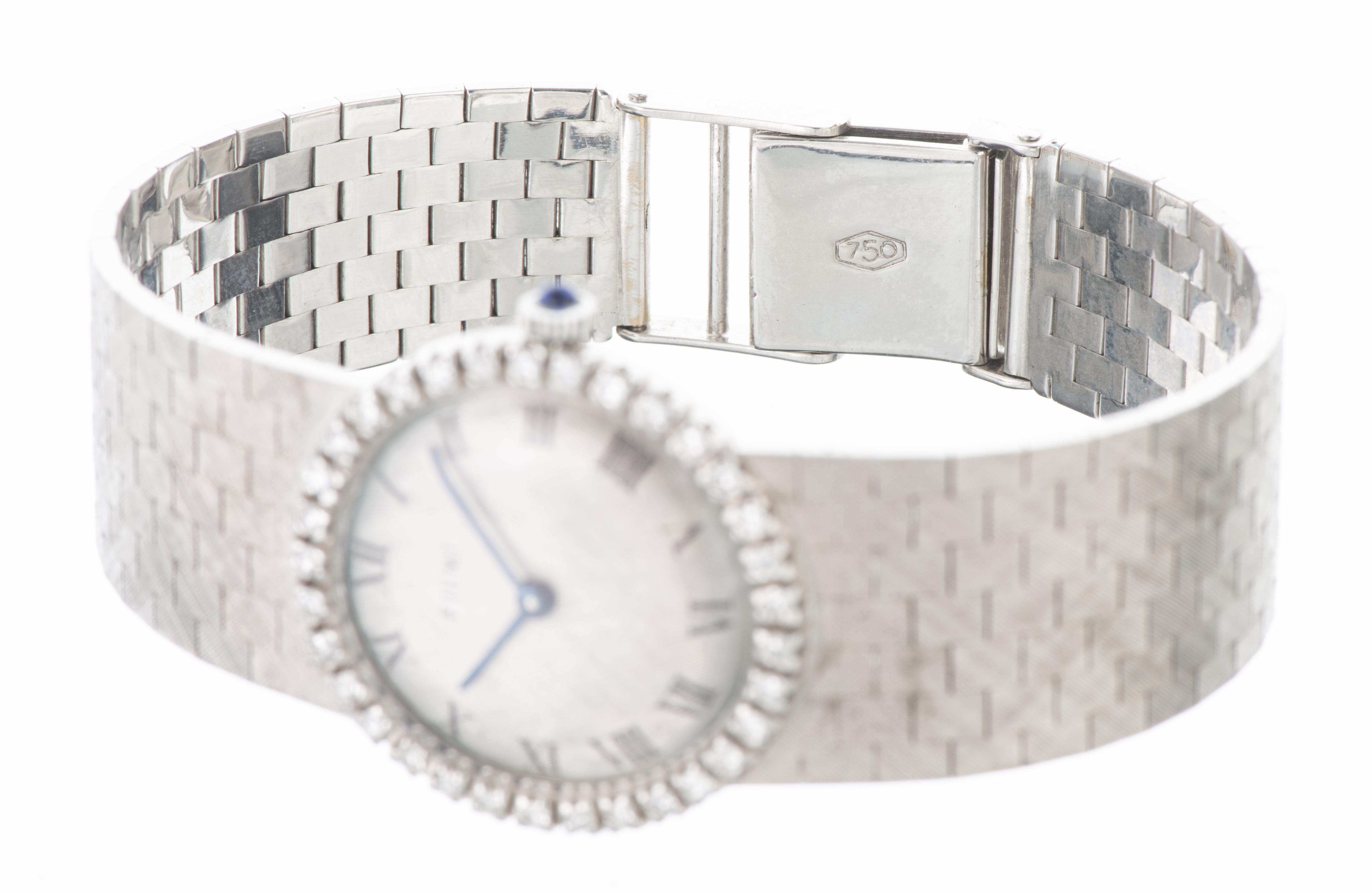 FIUMI - Montre-bracelet en or gris .750 avec bracelet milanais et pourtour de lunette de 33 diamants 8/8 pour un total de 0.33 ct 17 jewels.