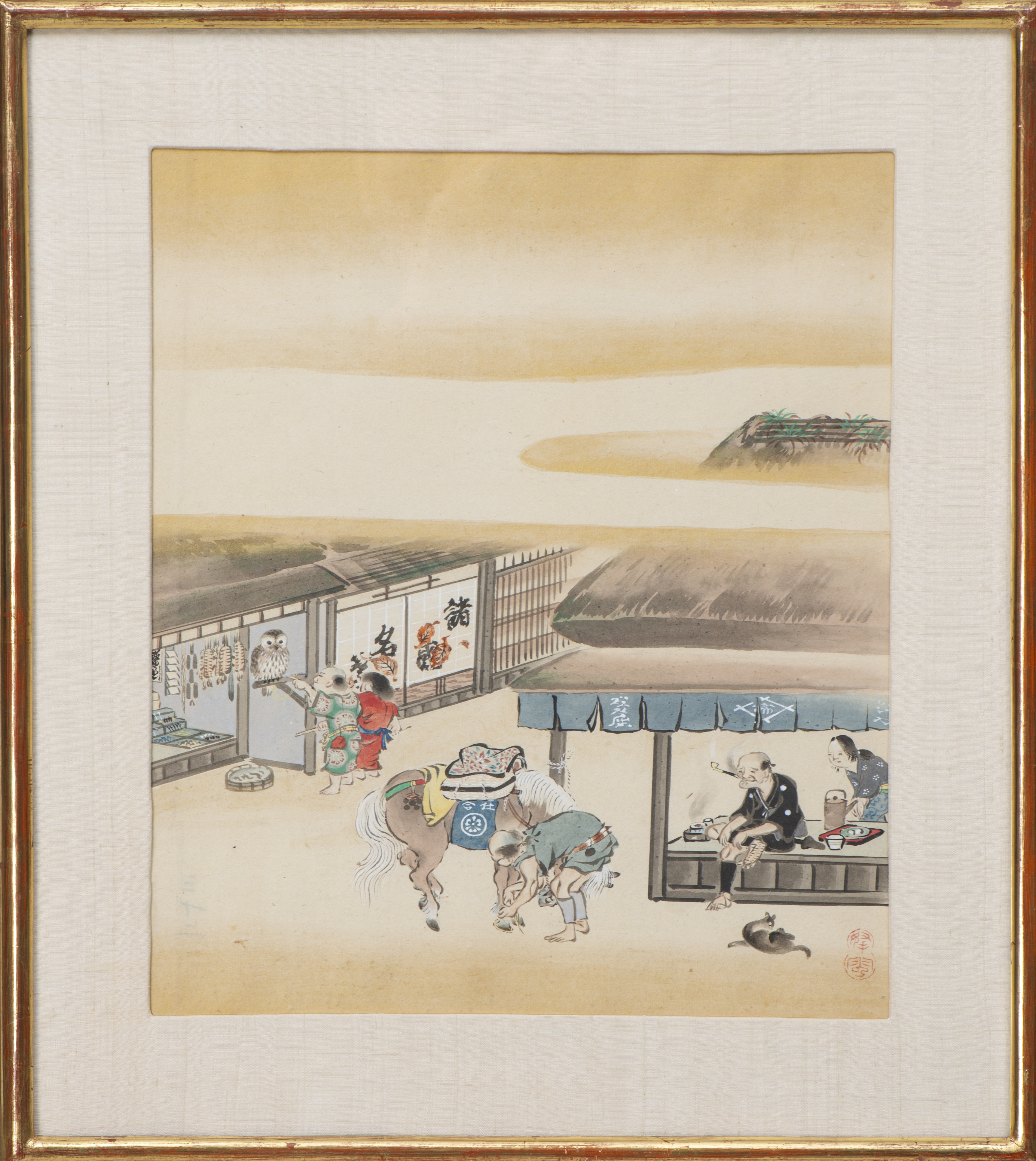 JAPON - Peinture de genre sur papier dite fûzoku-ga représentant un vieillard ou une scène de vie quotidienne pendant la période d'Edo