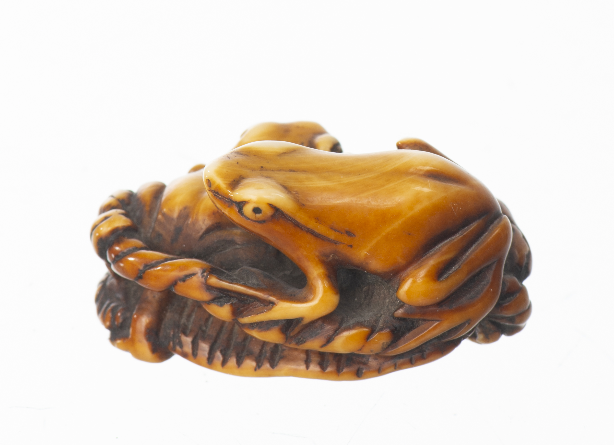 JAPON - XIXe- Netsuke en ivoire représentant deux grenouilles