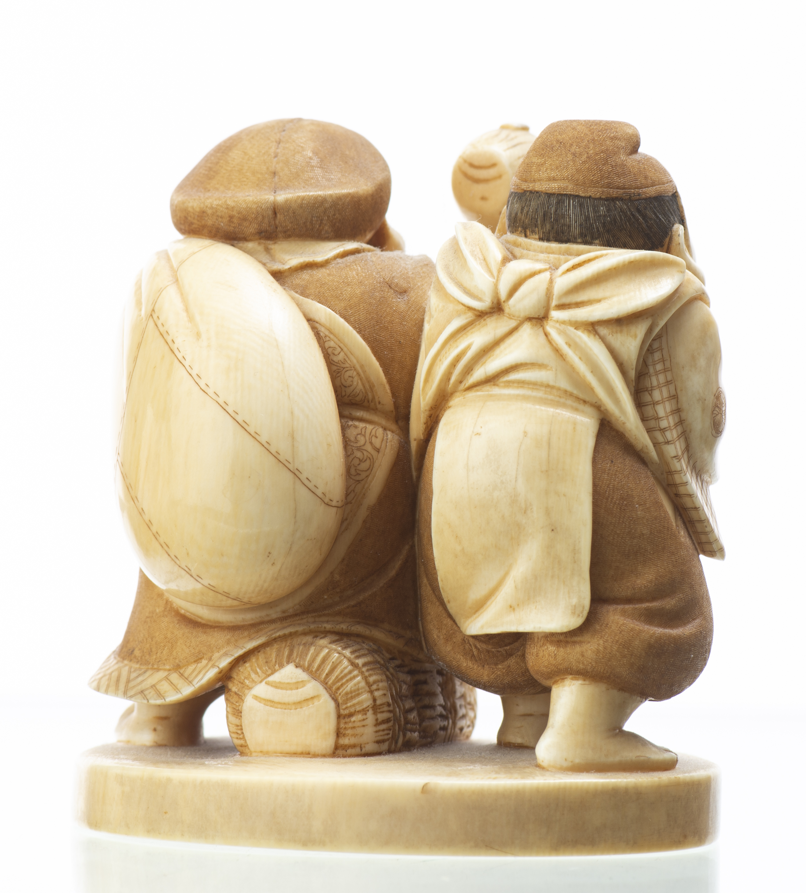 JAPON - Okimono en ivoire représentant un pêcheur accompagné d'une femme
