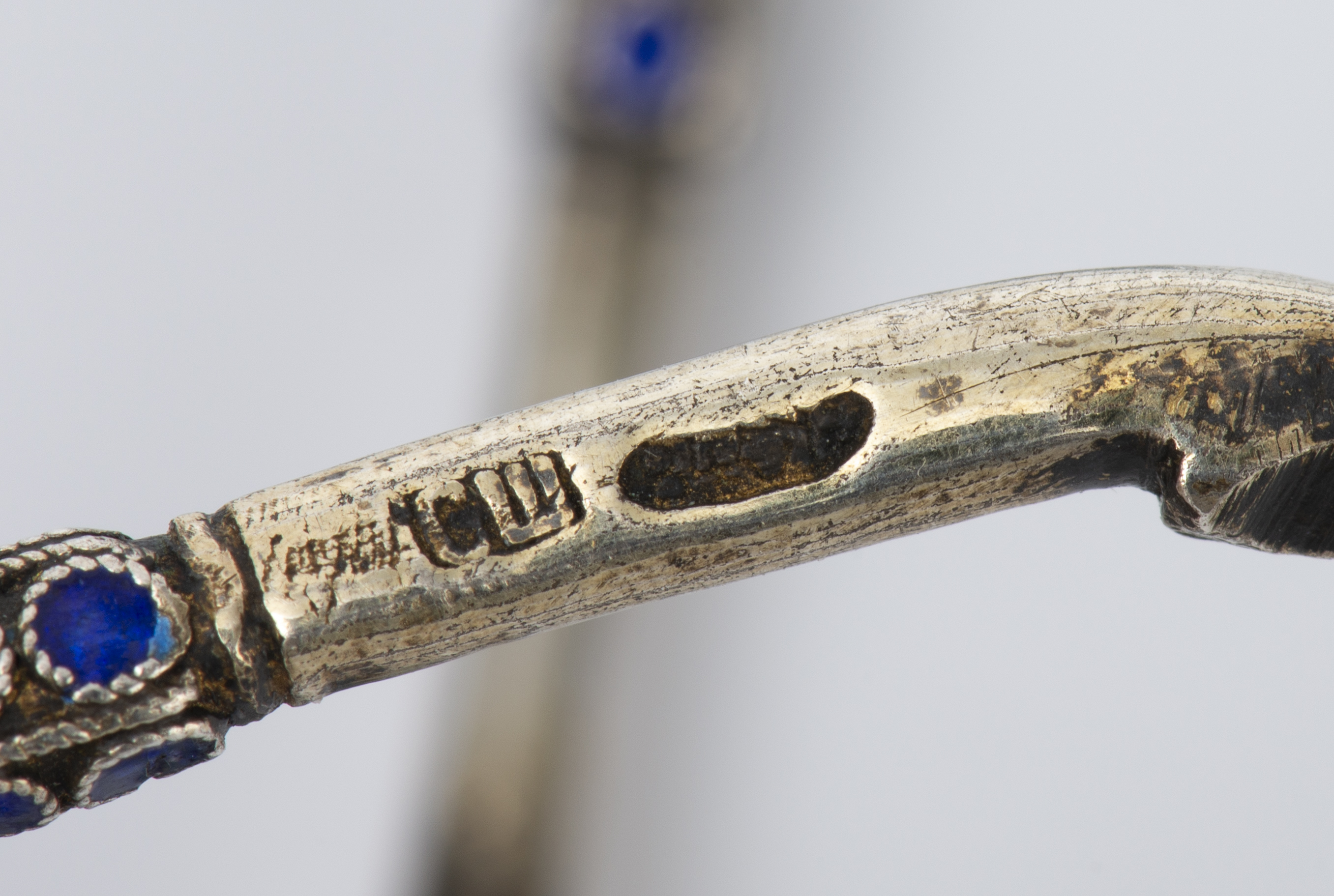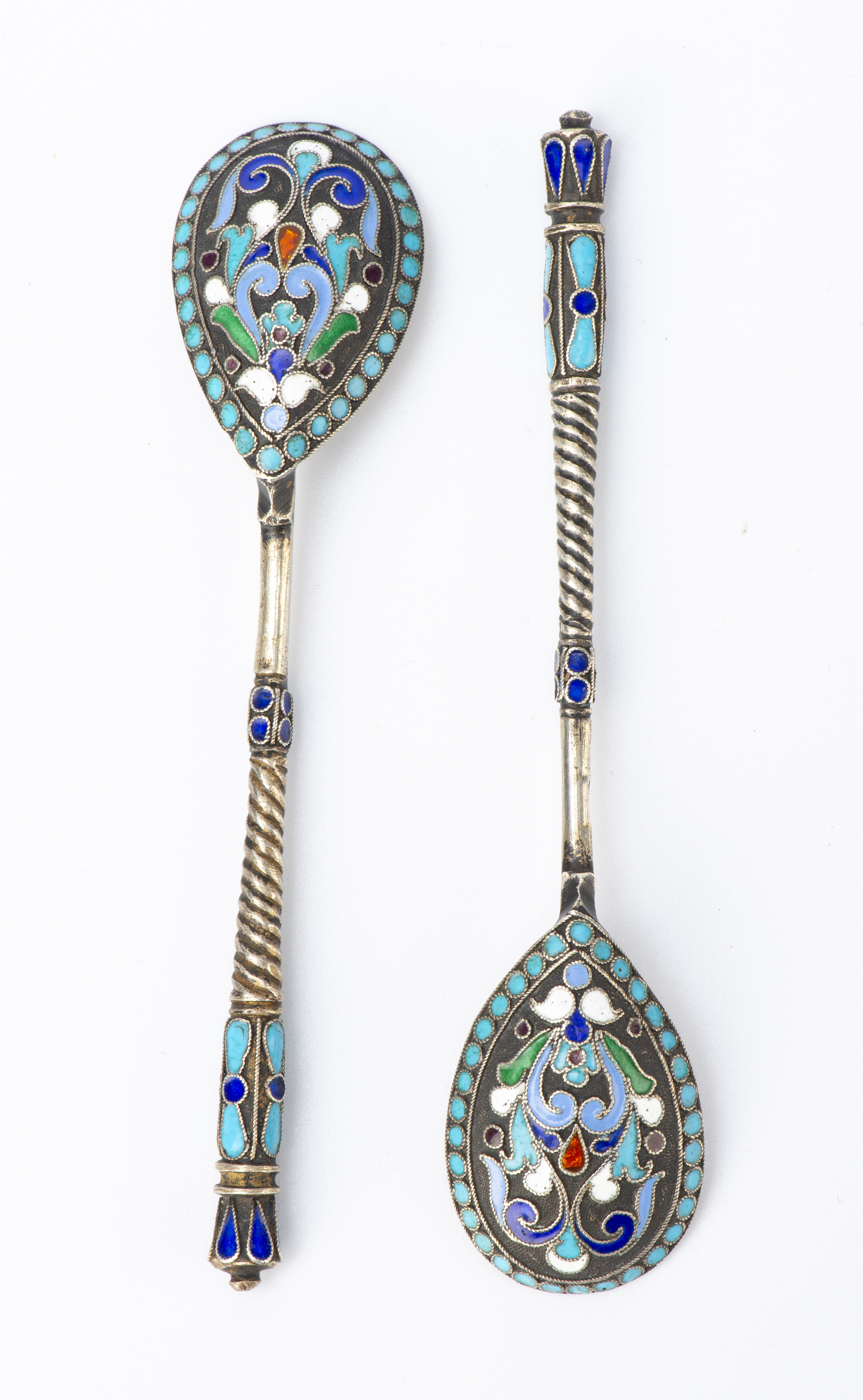 Travail russe début XXe - Paire de cuillères en argent et émail