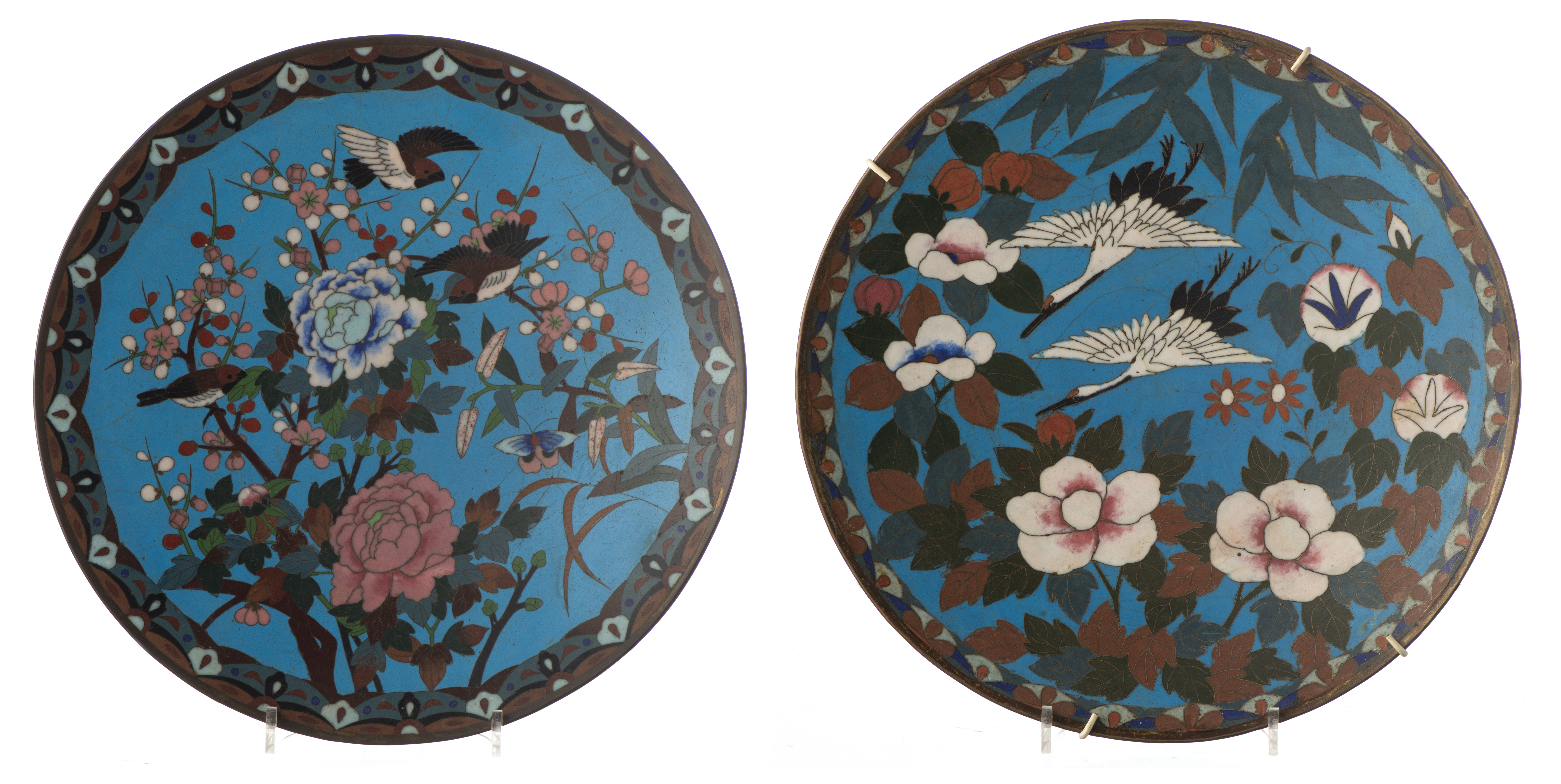 JAPON - Ensemble de deux plats en émaux cloisonnés, Vers 1900