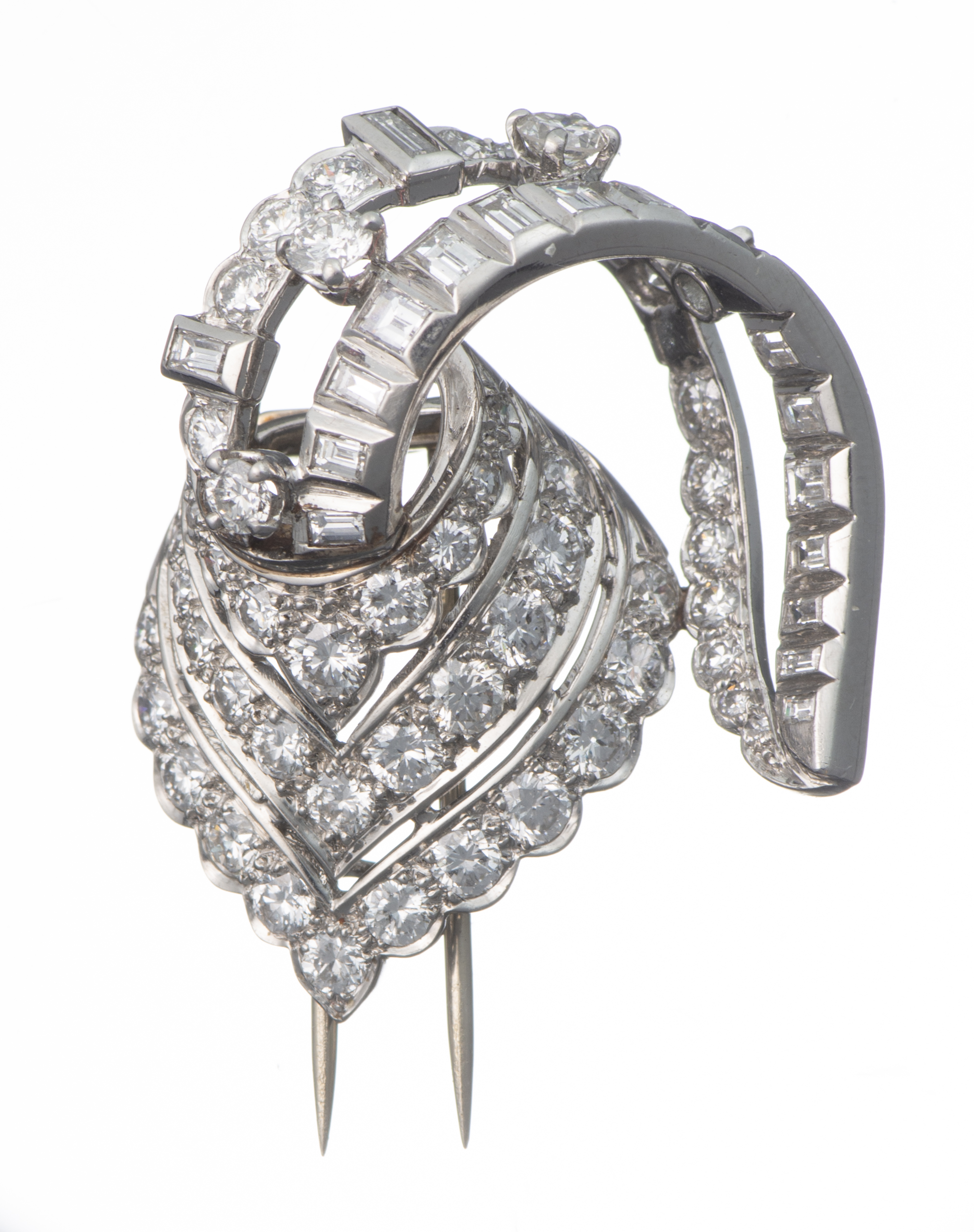 Broche clip Art déco en or blanc pavée de diamants
