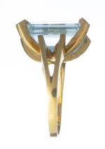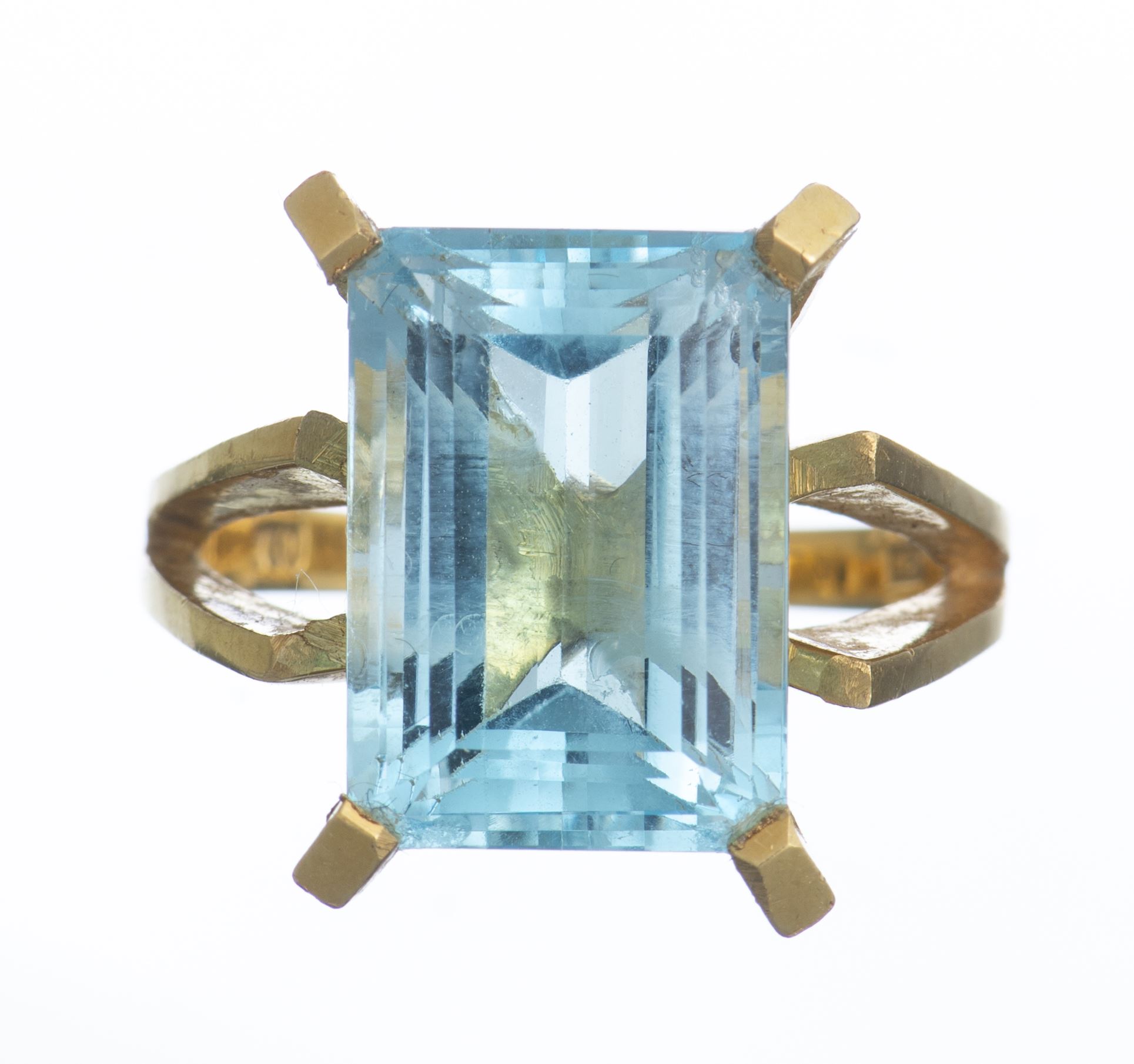 Bague aiguemarine rectangulaire de 12 cts sertie à 4 griffes en or jaune .750