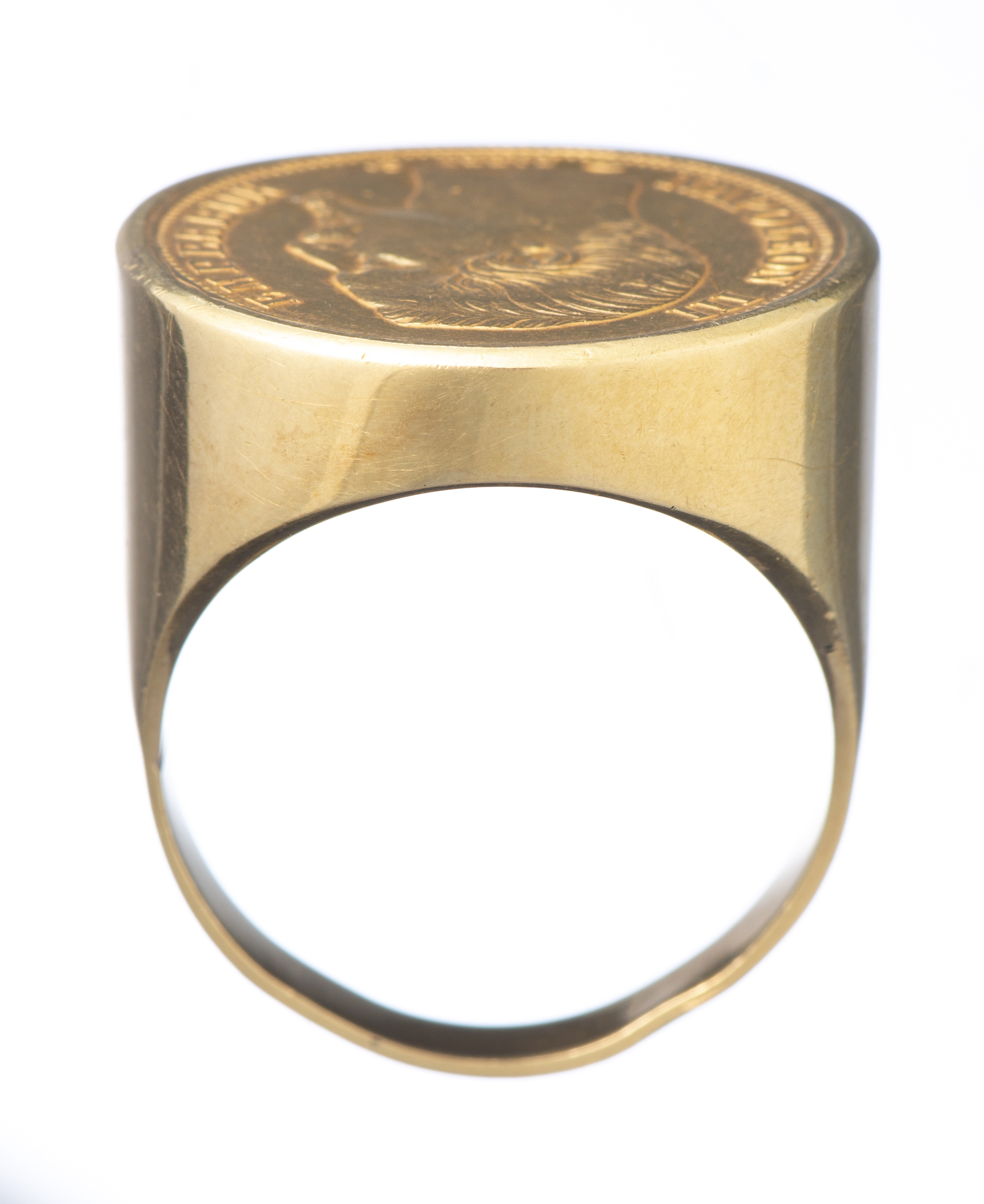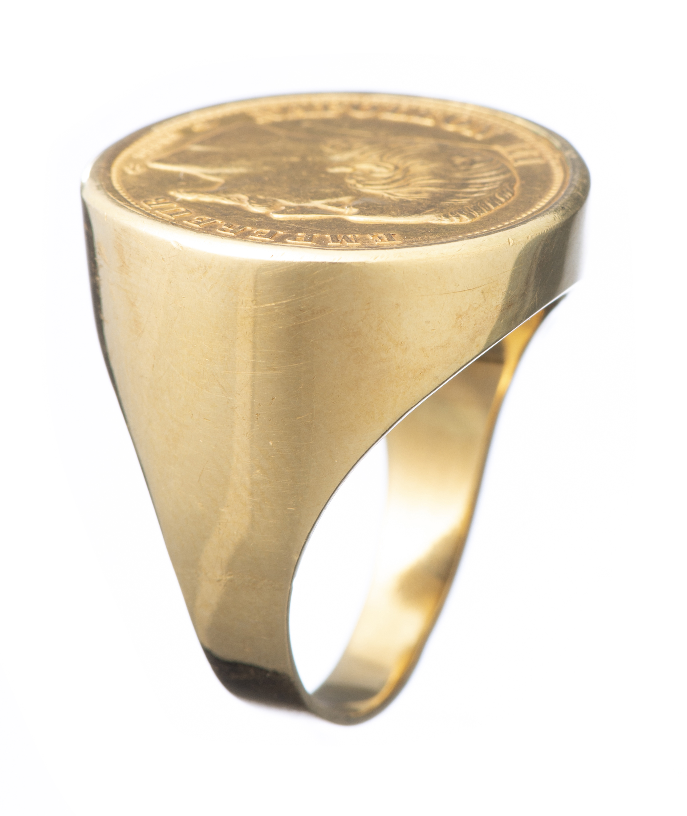 Bague chevalière en or jaune ornée d'une pièce d'or Napoléon III