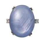 Bague en or blanc sertie d'un saphir étoilé de 35 cts