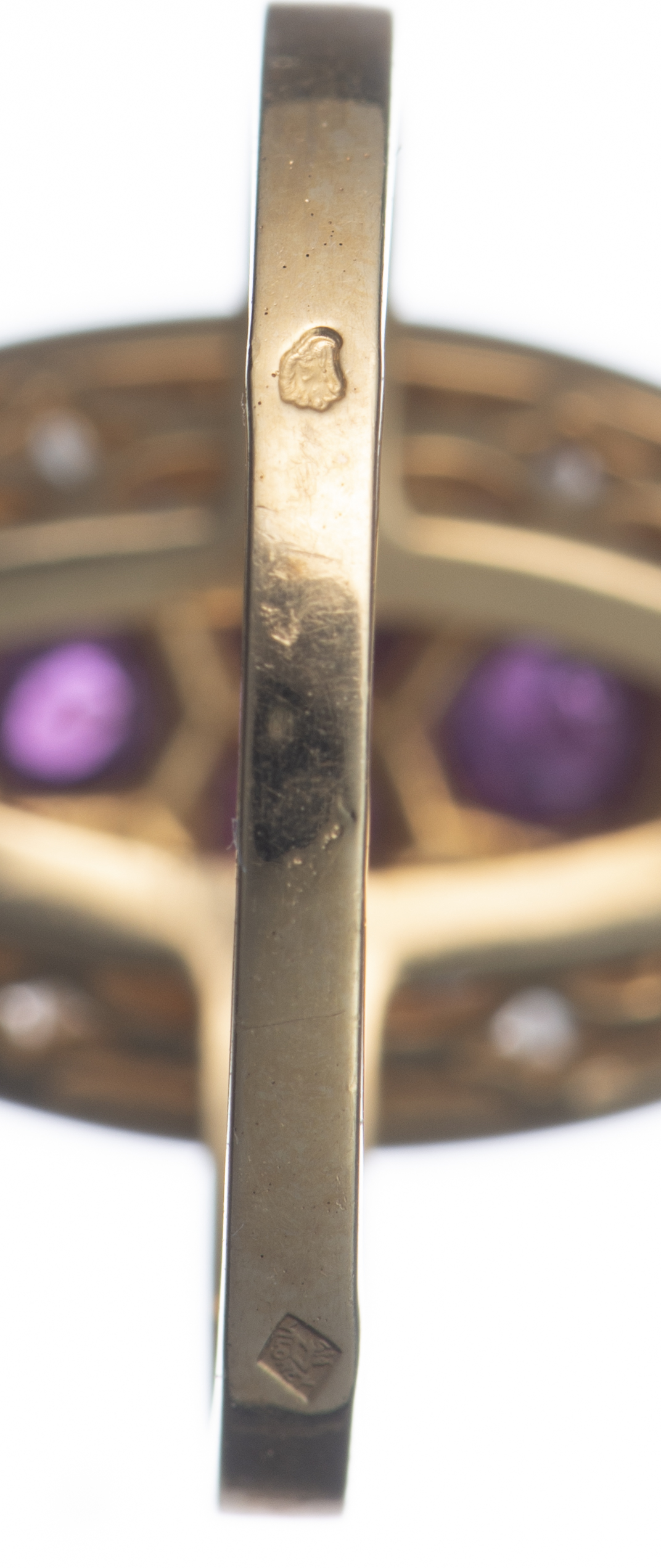 Belle bague en or jaune de style Art nouveau sertie de rubis et diamants