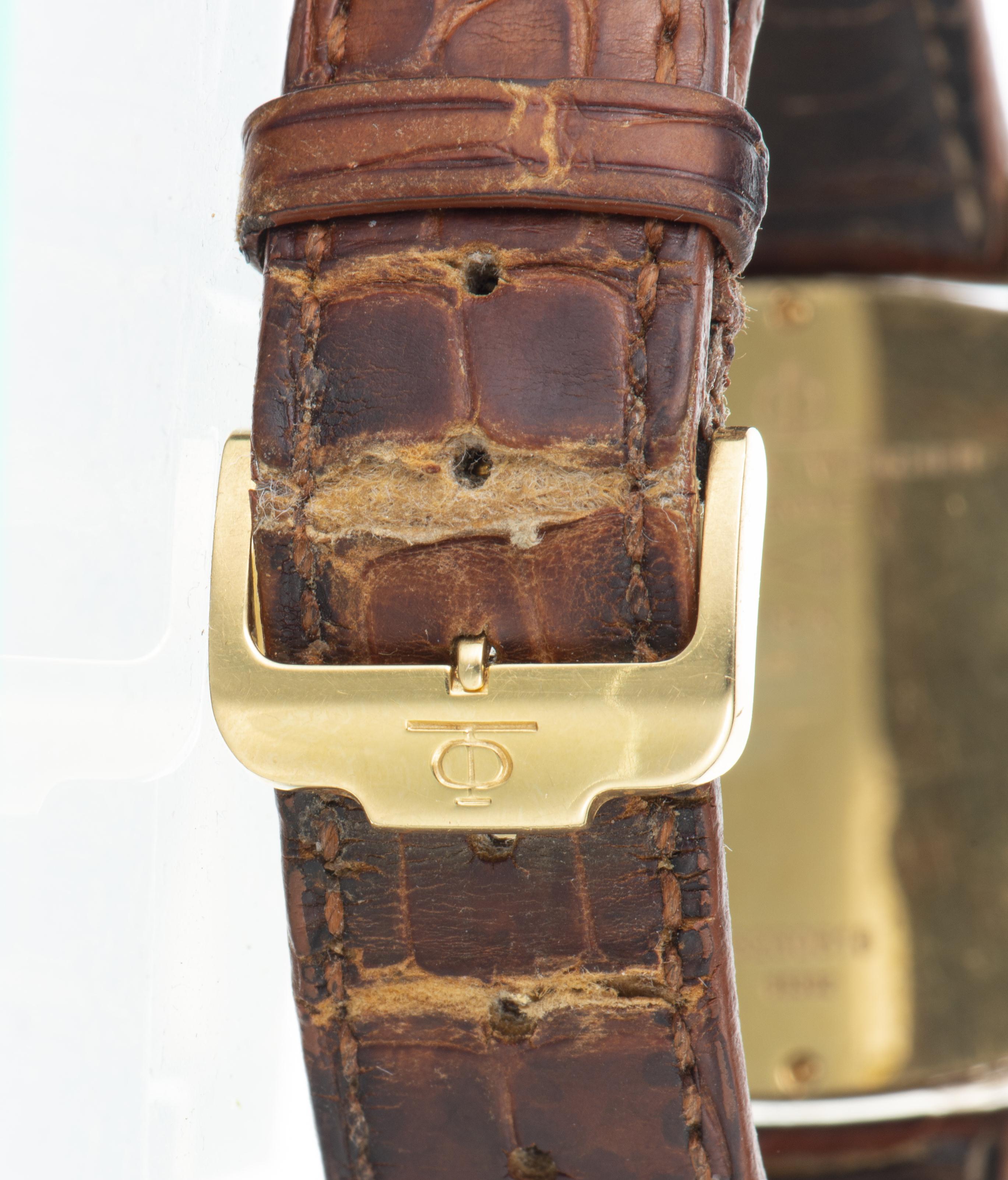 BAUME & MERCIER Hampton, montre-bracelet en or .750, mouvement mécanique, cadran rectangulaire couleur crème signé, cadran des secondes à 6h, ardillon signé en or, boîtier n°3230618.