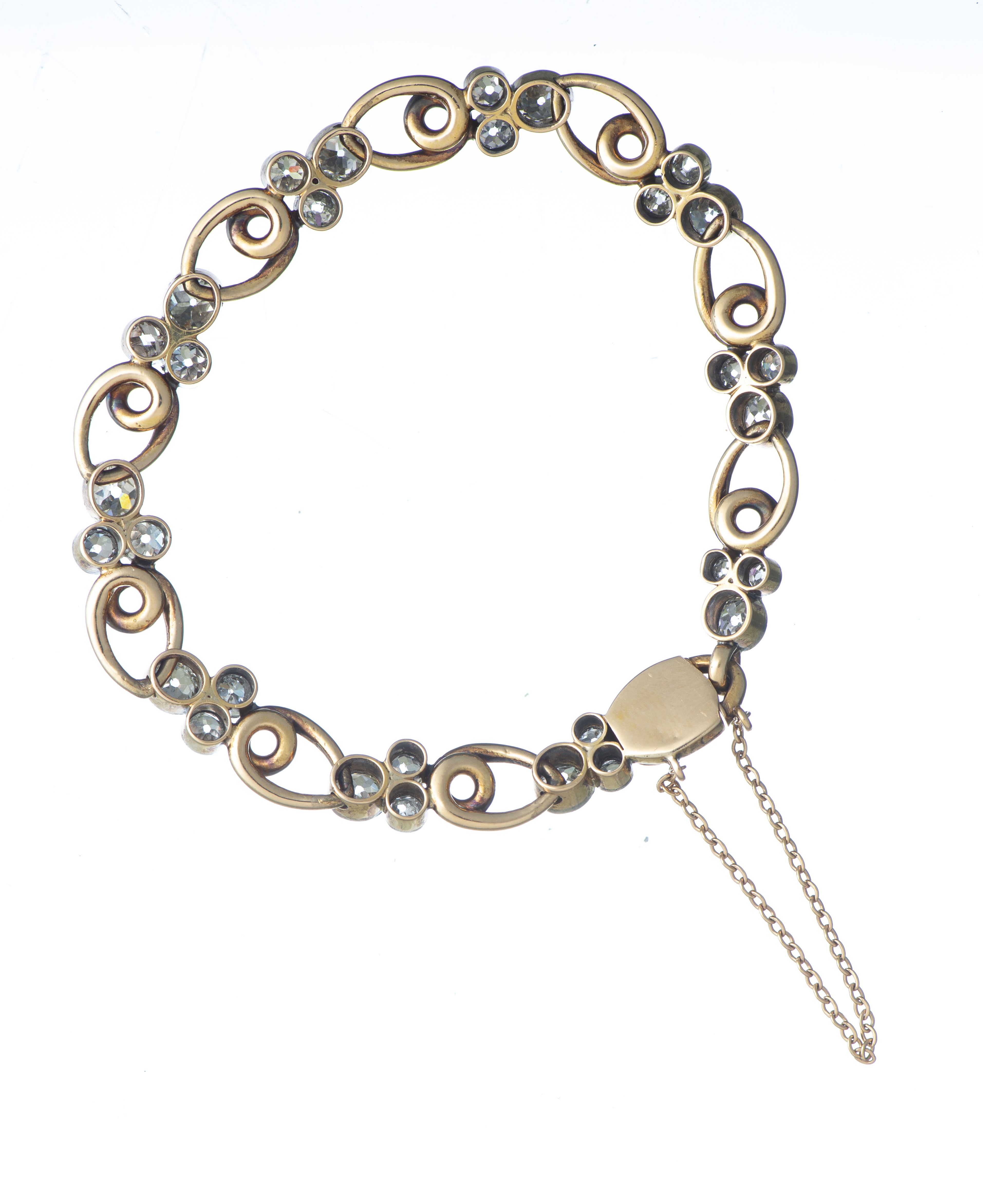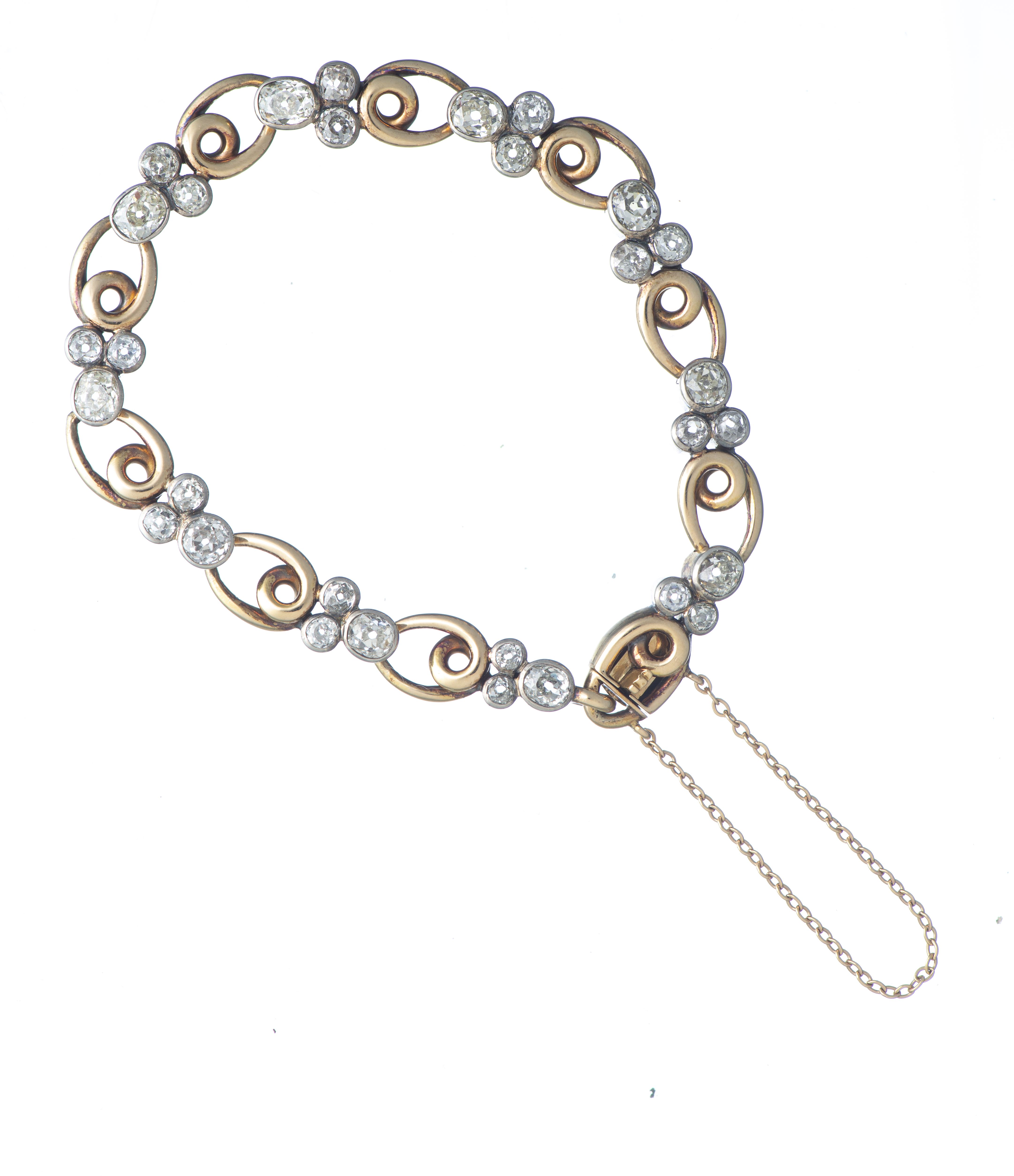 Bracelet en or jaune .750 et argent sertis clos de groupes de 3 diamants comprenant au total 10 motifs pesant au total 3 cts.