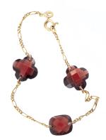 Bracelet en or jaune .750 et 3 grenats taillés en trèfle et coussin.