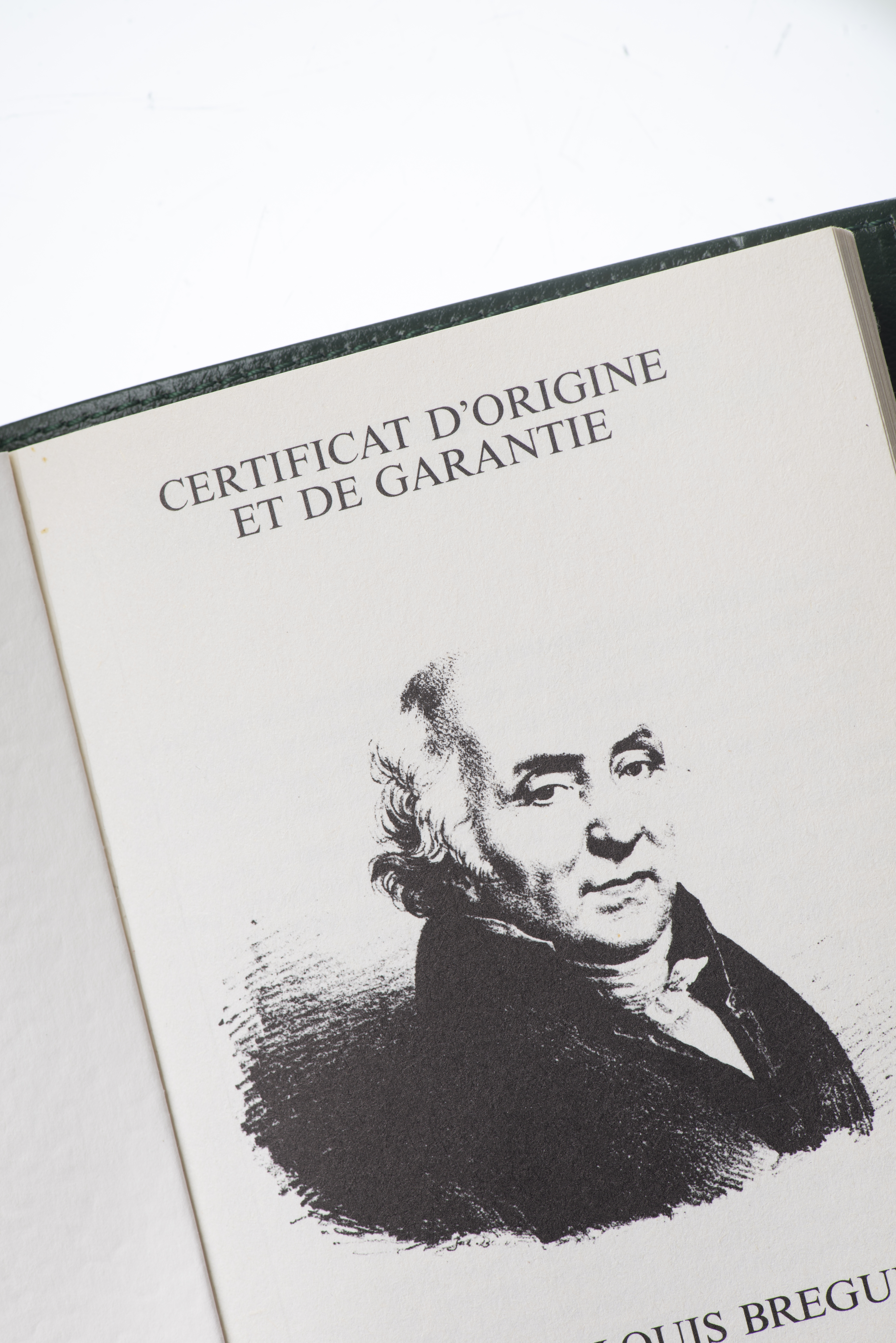 Mouvement : mécanique à remontage automatique, calibre Breguet basé sur Lemania, chronographe à roue à colonnes, signé et numéroté.