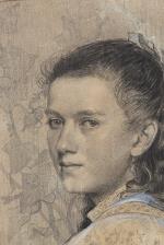 Charles L'ÉPLATTENIER (1874-1946), 'Portrait de jeune fille', fusain sur papier rehaussé à la gouache, signé et daté 1897.