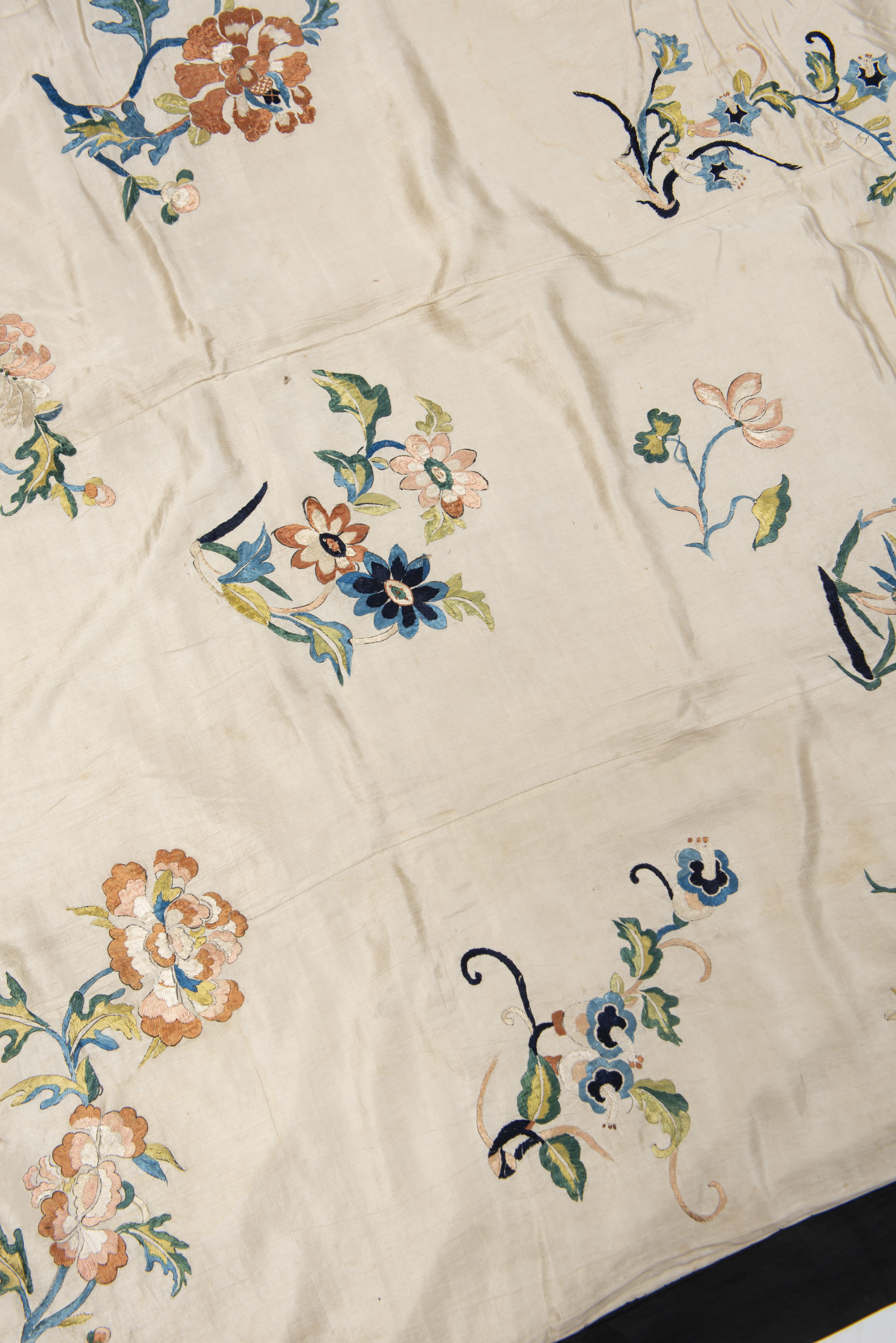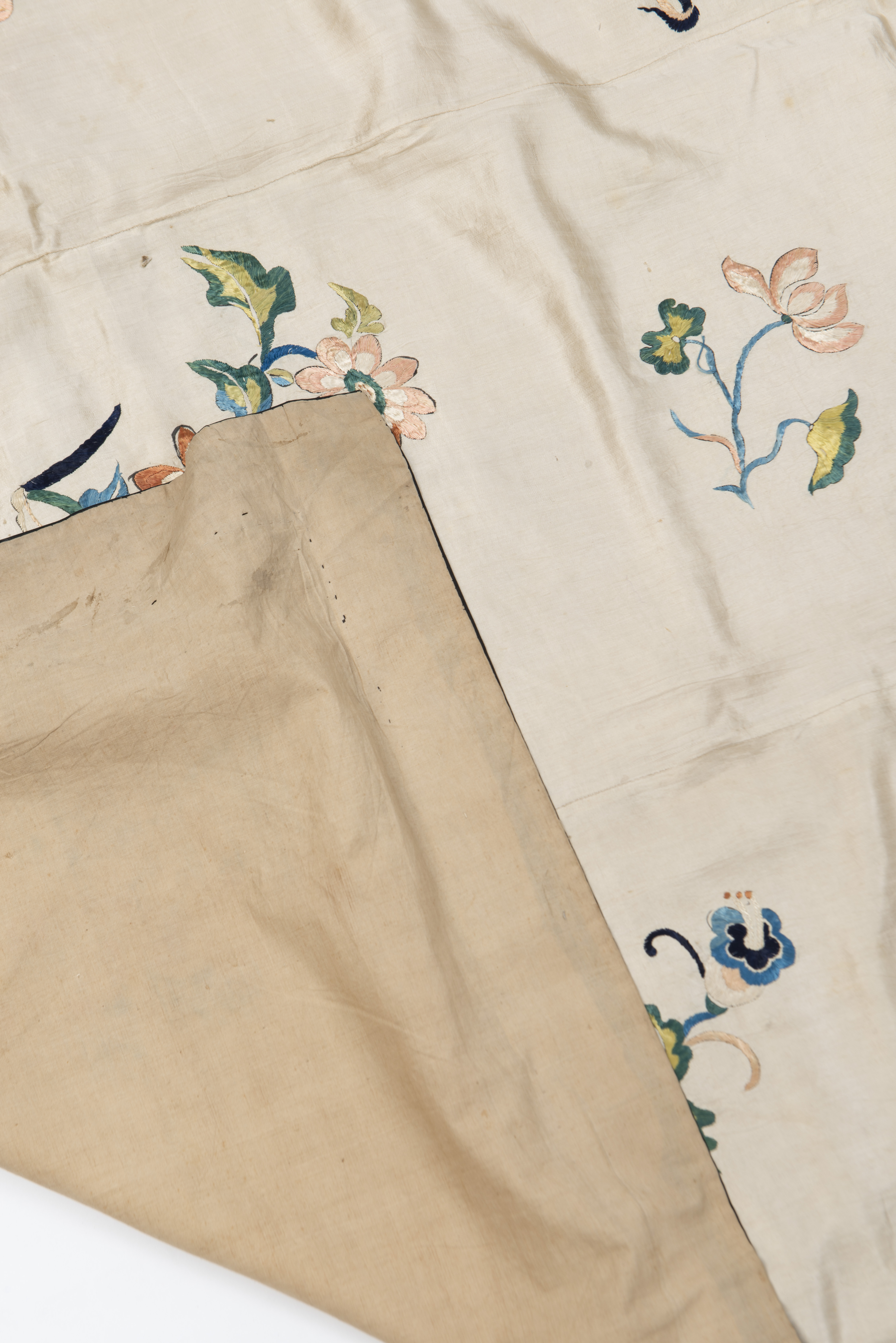 CHINE - Soierie à décor brodé de pivoines