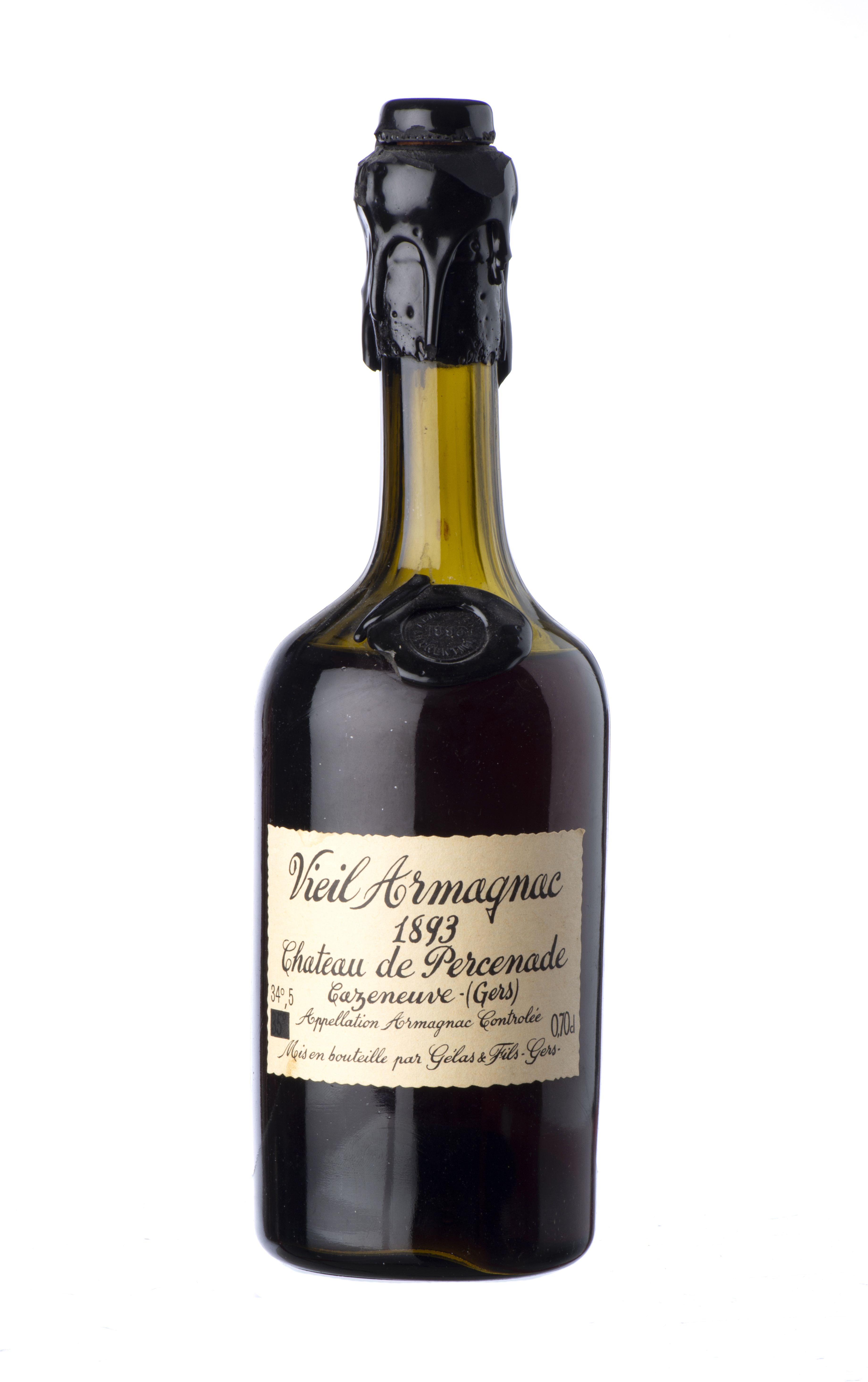 Château de Percenade à Cazeneuve, Vieil Armagnac mis en bouteille par Gélas & Fils 1893.