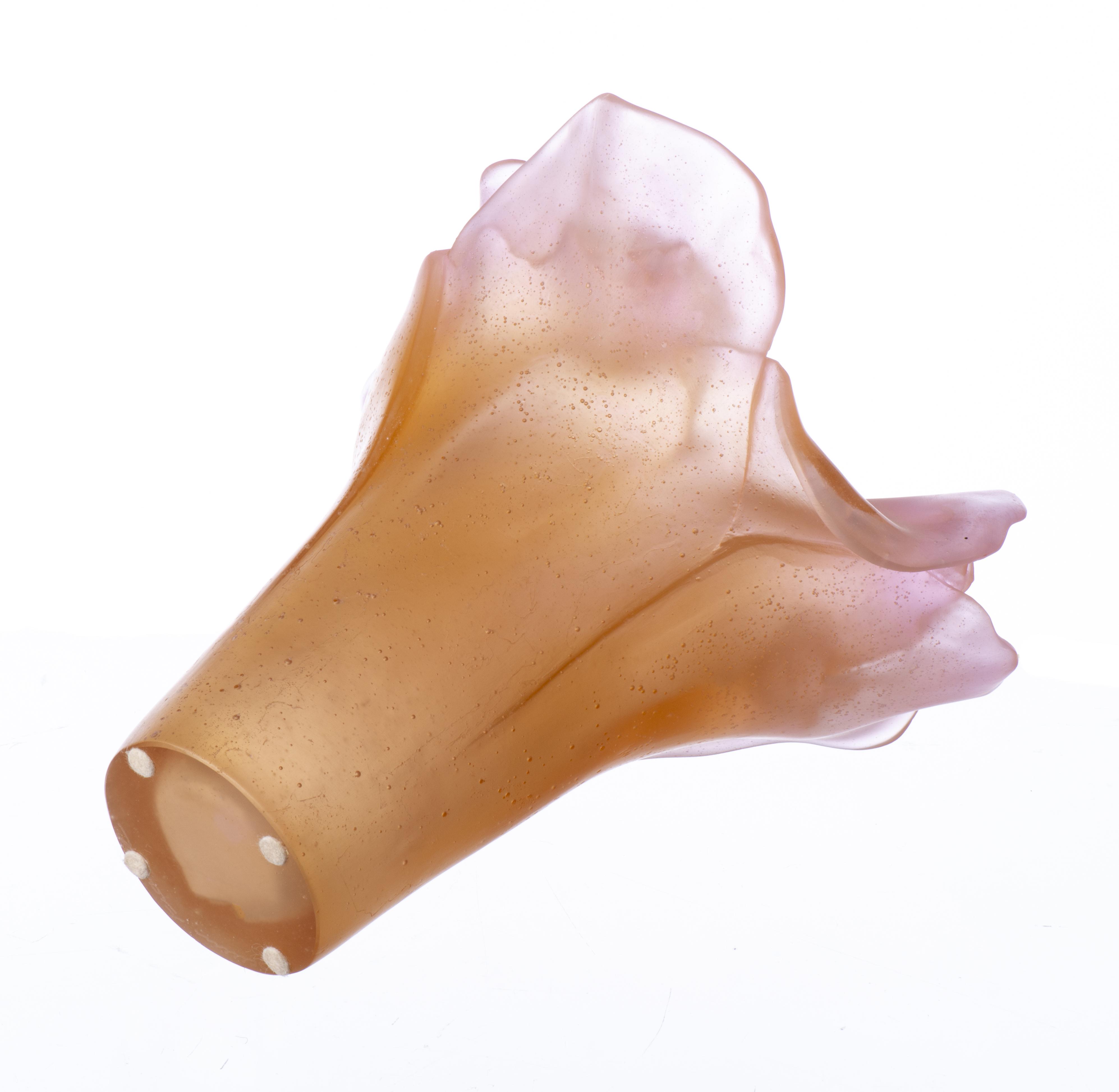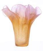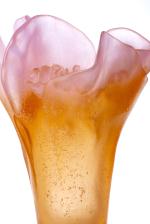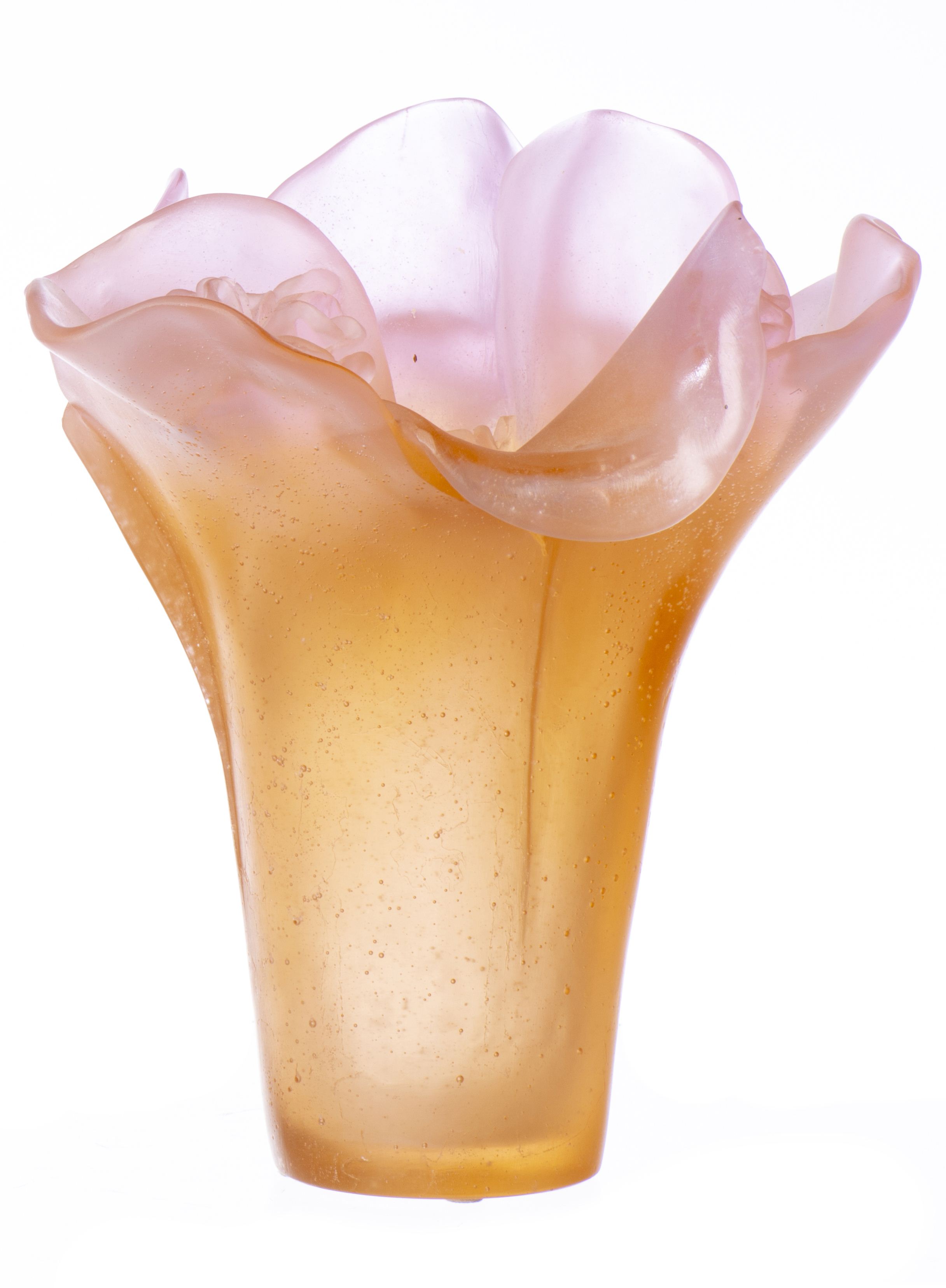 DAUM, Vase en verre épais teinté orange. Signé sous la base "Daum France".
