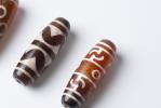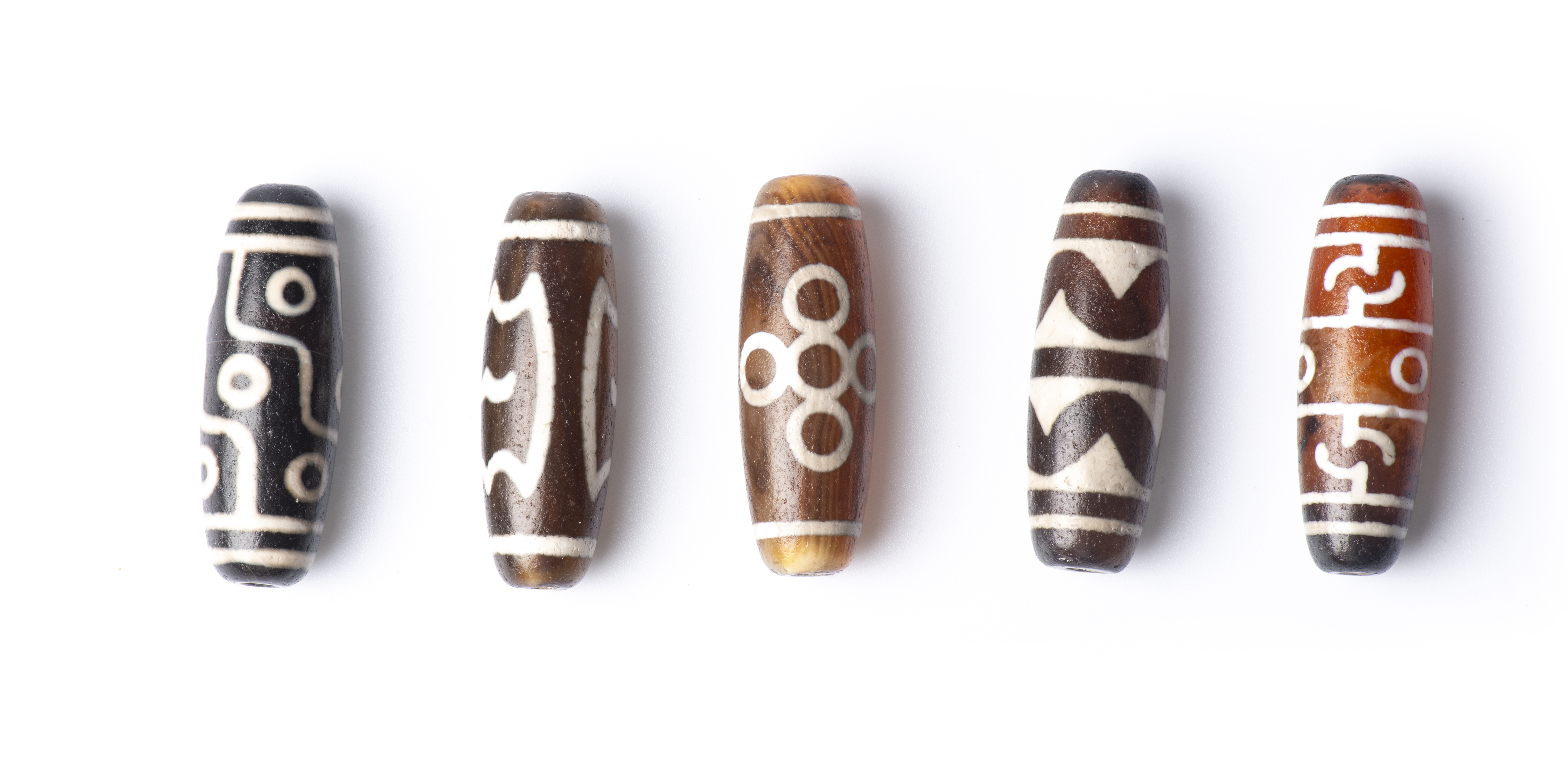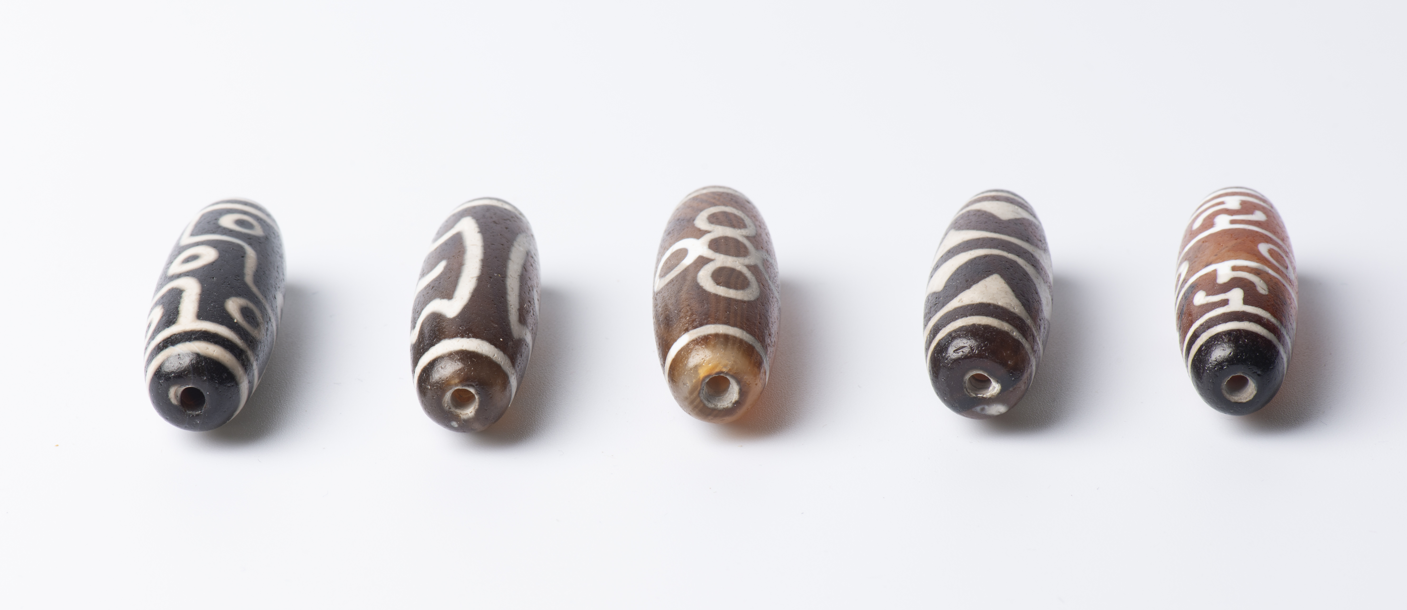 Ensemble de cinq perles Bi Dzi en agate du Tibet