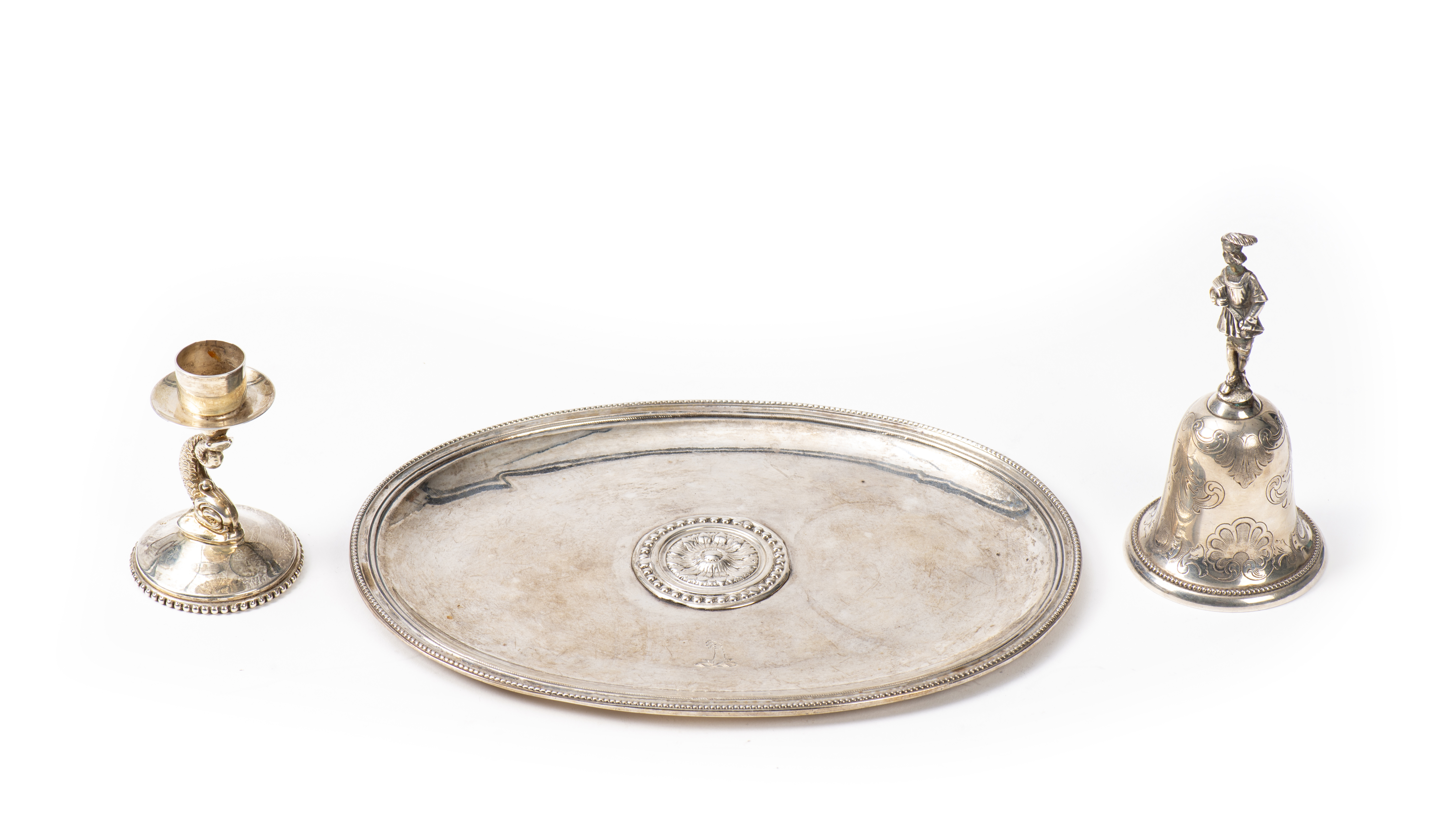 On y joint également un petit bougeoir en argent sterling à pied en forme de dauphin