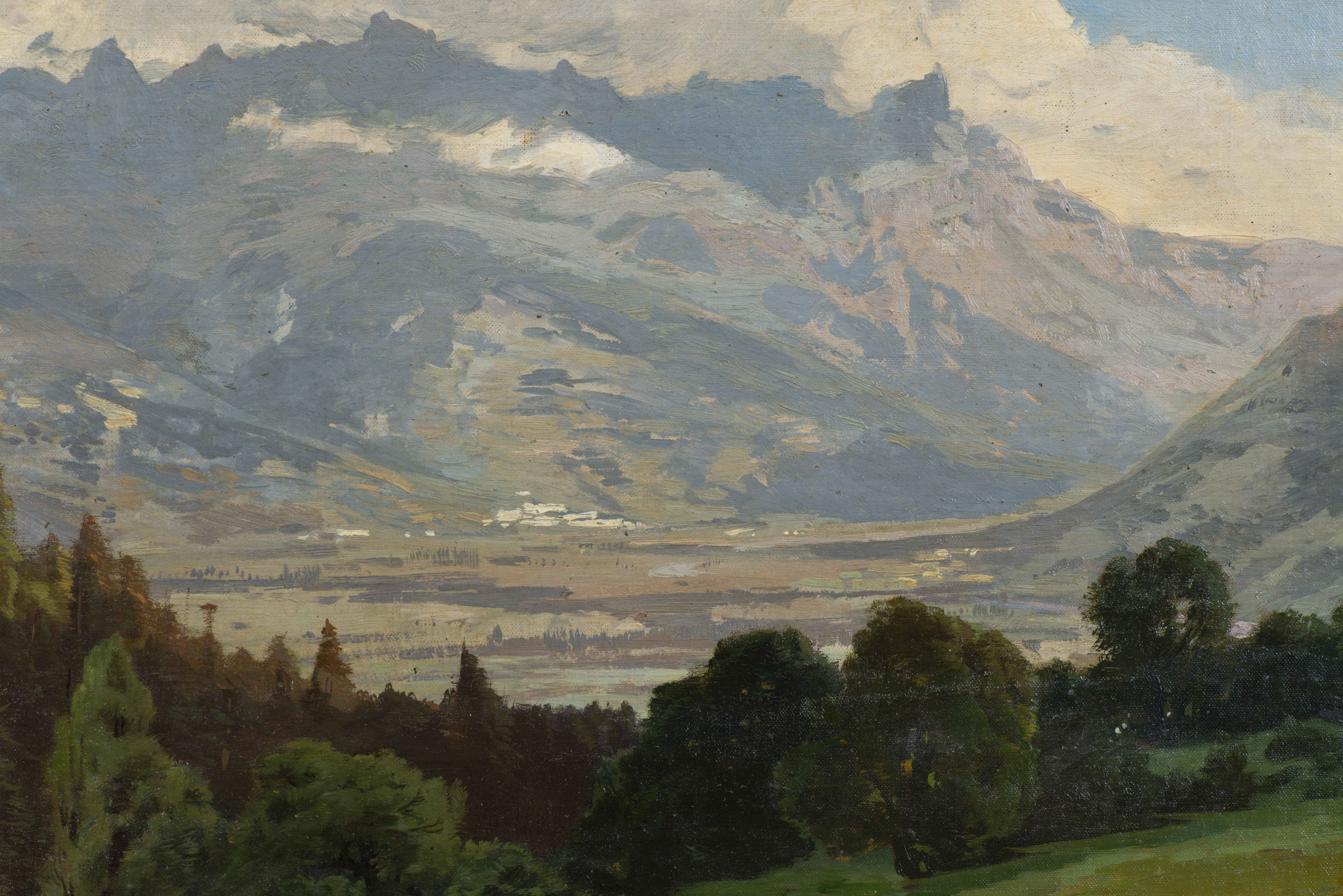 Franz ZIMMERMANN (1864-1956), "Paysage de la Plaine du Rhône vers Brig et le Simplon", huile