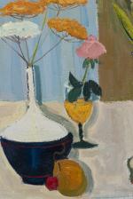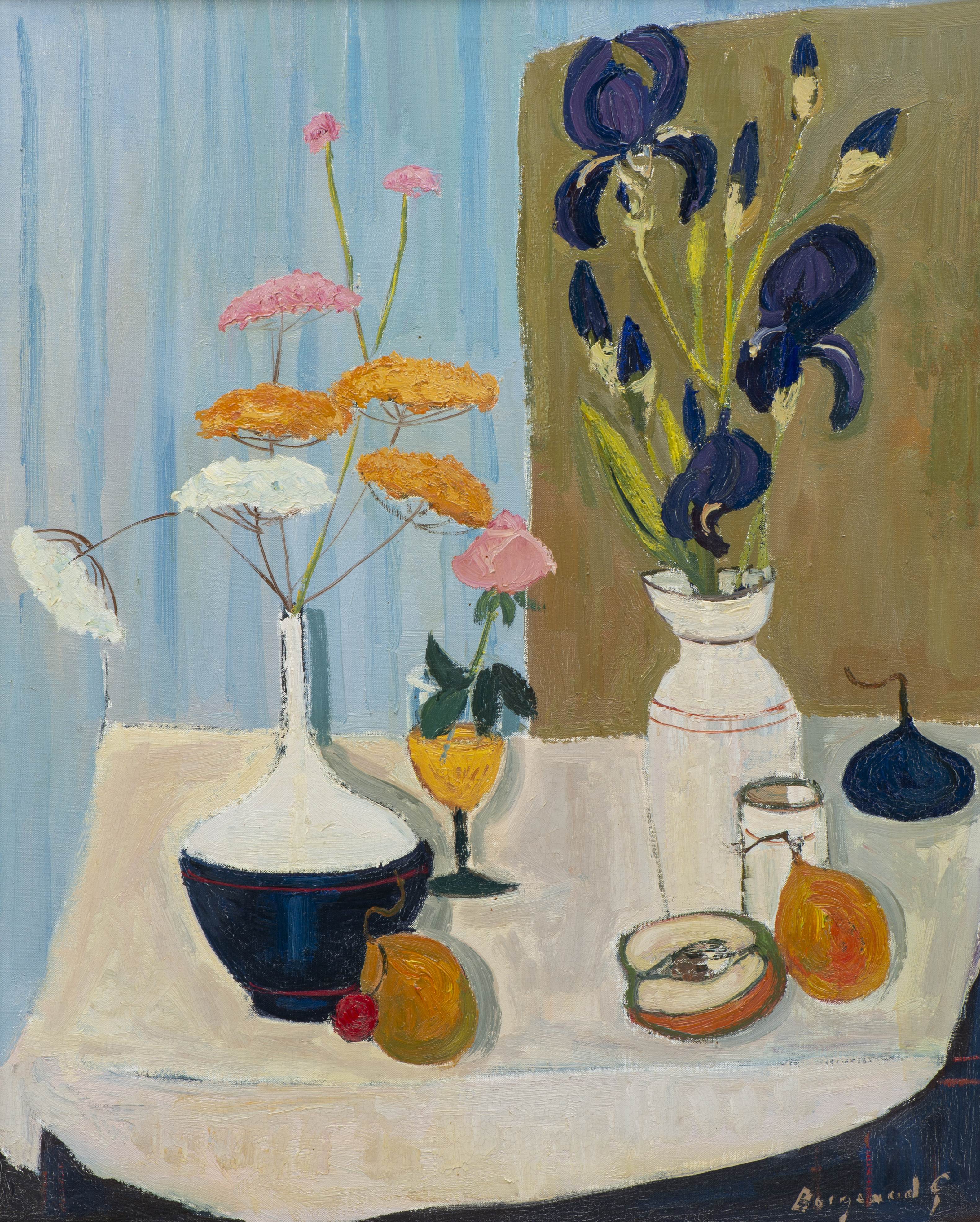 Georges BORGEAUD (1914-1998) "Nature morte aux fleurs et aux fruits- Les iris" huile