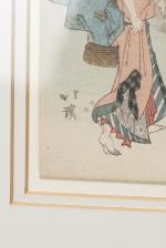 JAPON - Totoya HOKKEI (1780-1850), "Collectionner les coquillages pour le club des poètes Fundarike", estampe