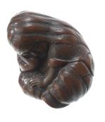 JAPON - XIXe - Netsuke de l'école de Nagoya en bois d'une Shôjô dormante par Masajo