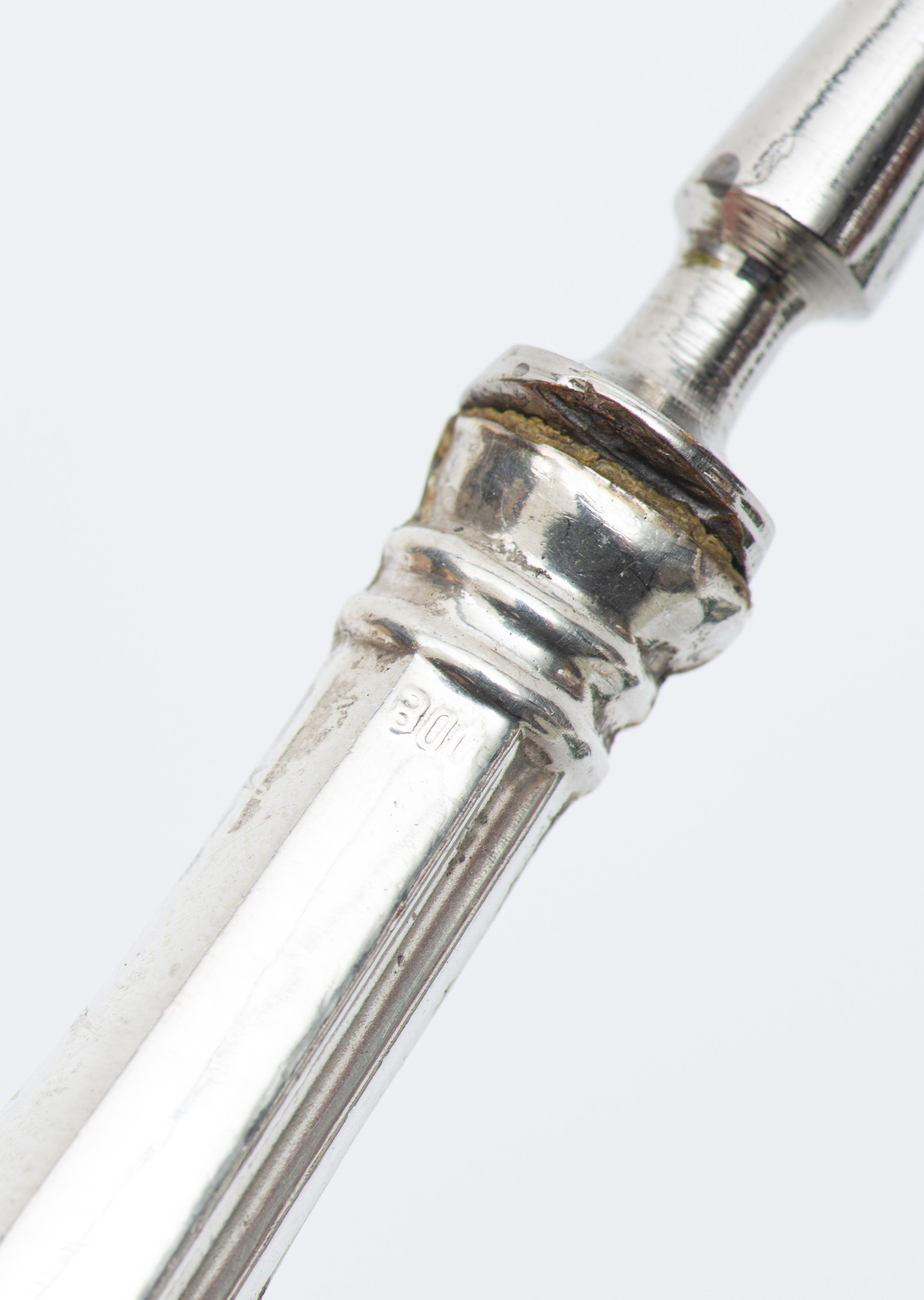 - Six couteaux à dessert de style Art nouveau à manche en argent .800 fourré. Poids (avec manche et lame) : 193 g