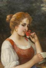 Josef Wenzel SÜSS (1857-1937), "Jeune femme à la fleur", Huile sur toile, signé en bas à gauche. Dans un beau cadre Florentin.