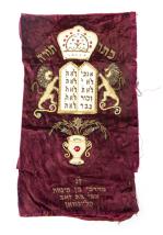Ensemble de deux manteaux de Torah "Les Dix Commandements, Couronne, Lions" et "étoile de David", en velours pourpre et rouge. Israel, 1960, H. 72 x 43 cm