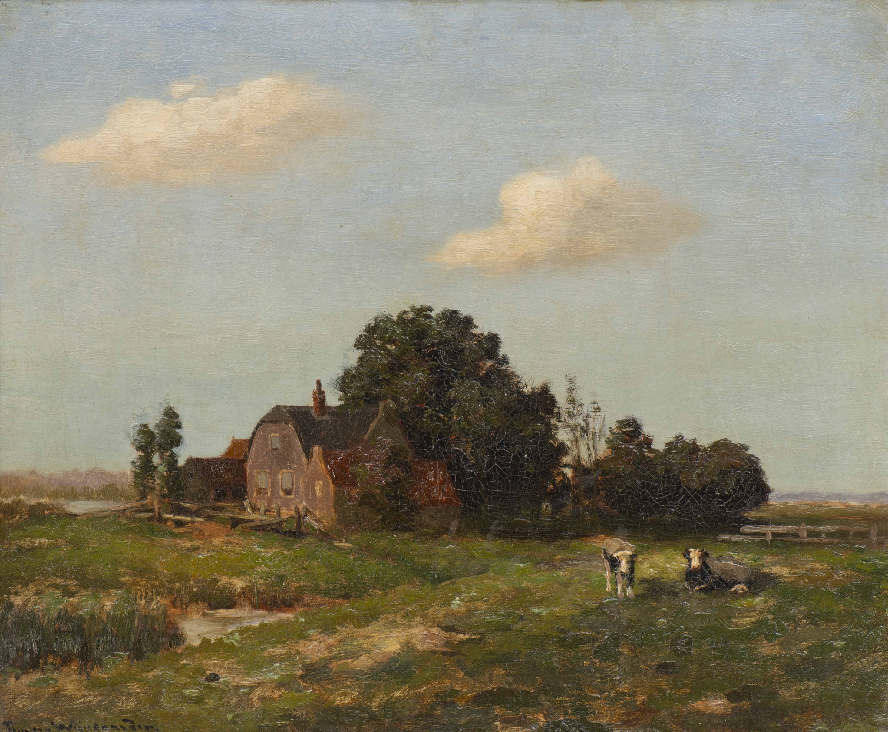 Theodorus VAN WYNGAARDEN (1874-1952), "Paysage de campagne", huile sur toile, signé en bas à droite.