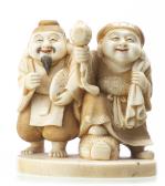 JAPON - Meiji - Netsuke sculpté en ivoire représentant deux…