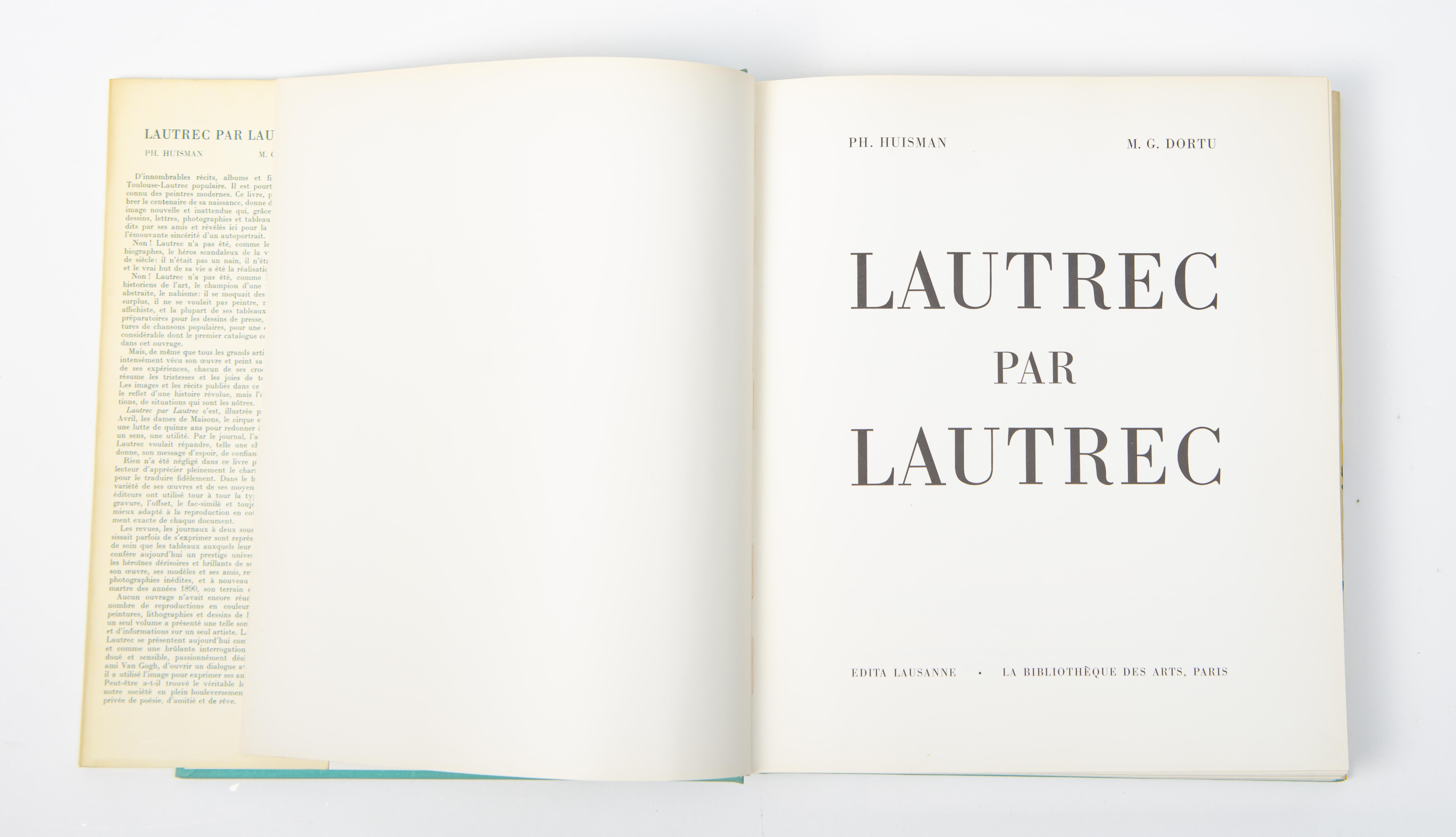 - Toulouse LAUTREC - PH. HUISMAN - M.G. DORTU. "Lautrec par Lautrec". Édition Bibliothèque des arts, Edita SA, 1964.