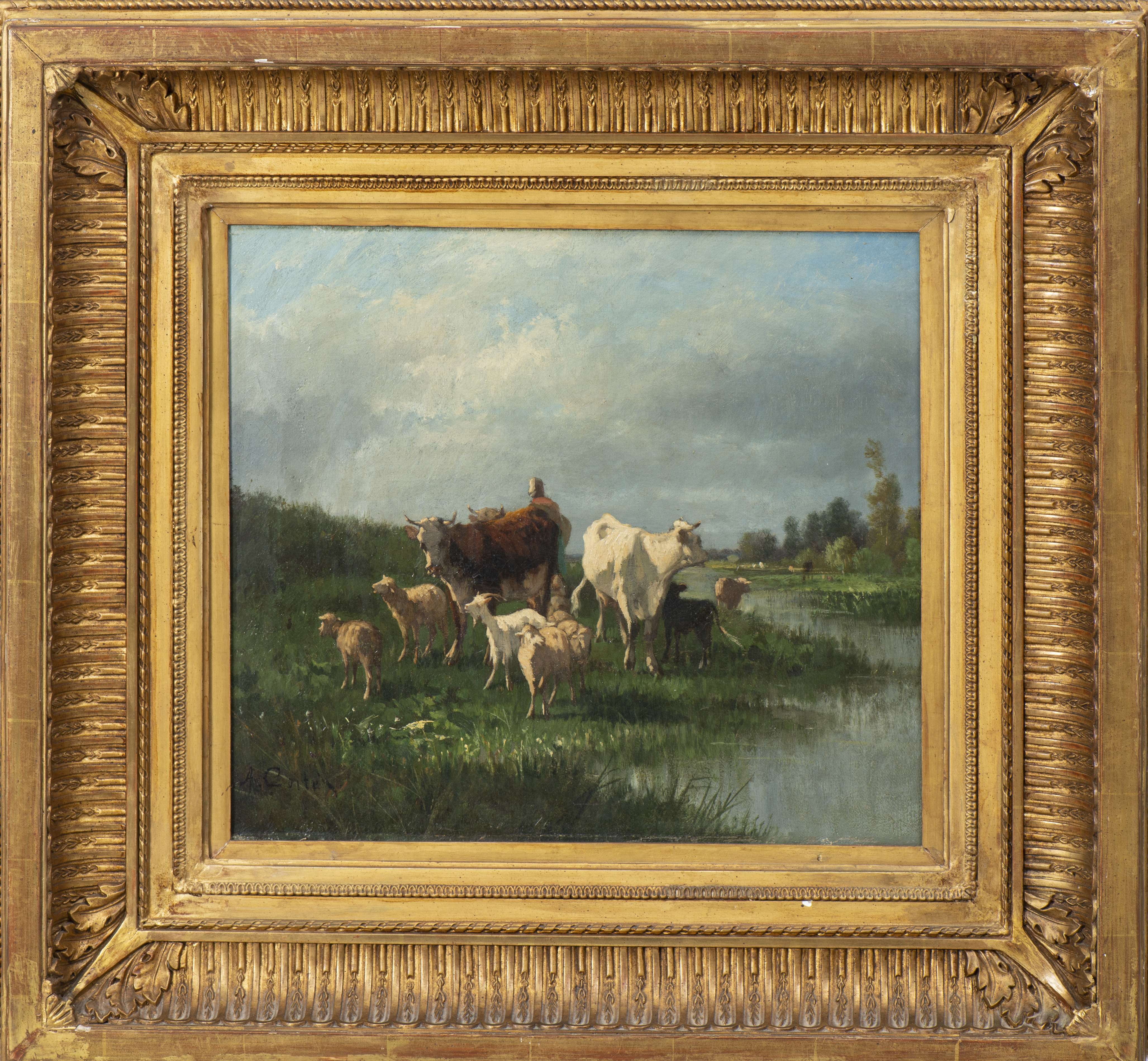 Antonio CORDERO CORTES (1827-1908), 'Vaches et chèvres dans un pré', huile sur toile signé en bas à gauche.