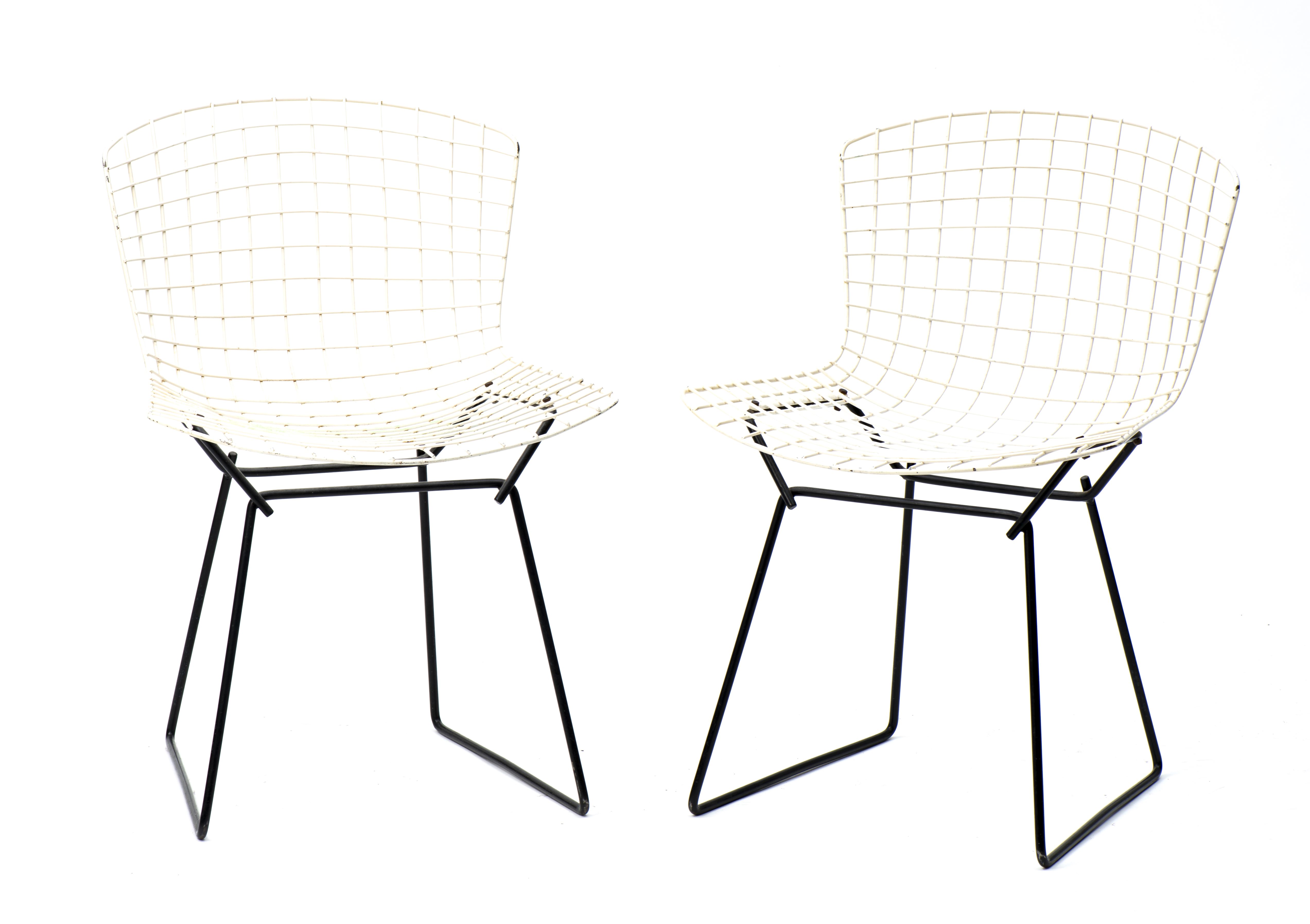 Harry BERTOIA (1915-1978), paire de chaises "Wire" en fil d'acier blanc pour l'assise et le dossier et noir pour le piètement . Edition ancienne.
