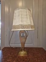 Lampe-scuplture en bois à fût tubulaire et piètement en laiton