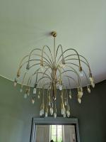 Lustre "Casacade", travail italien circa 1980 en métal nickelé et doré à 32 bras de lumière.