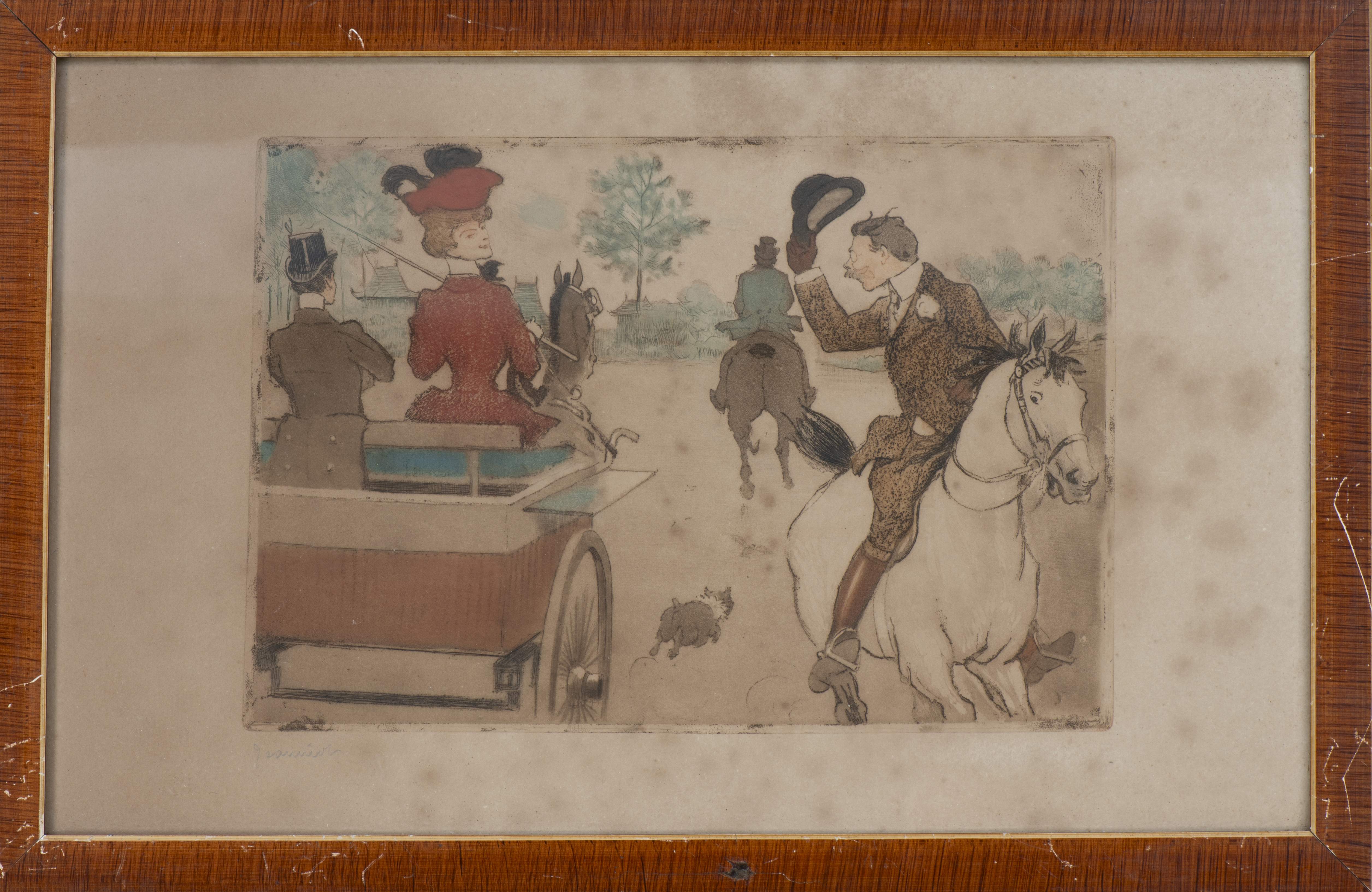 Pierre Georges JEANNIOT (1848-1934), "Entrée dans le bois de boulogne", aquatinte