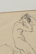Théophile Alexandre STEINLEN (1859-1923), "Nu de profil", dessin à l'encre de Chine sur papier, signé à l'encre brune en bas à gauche.